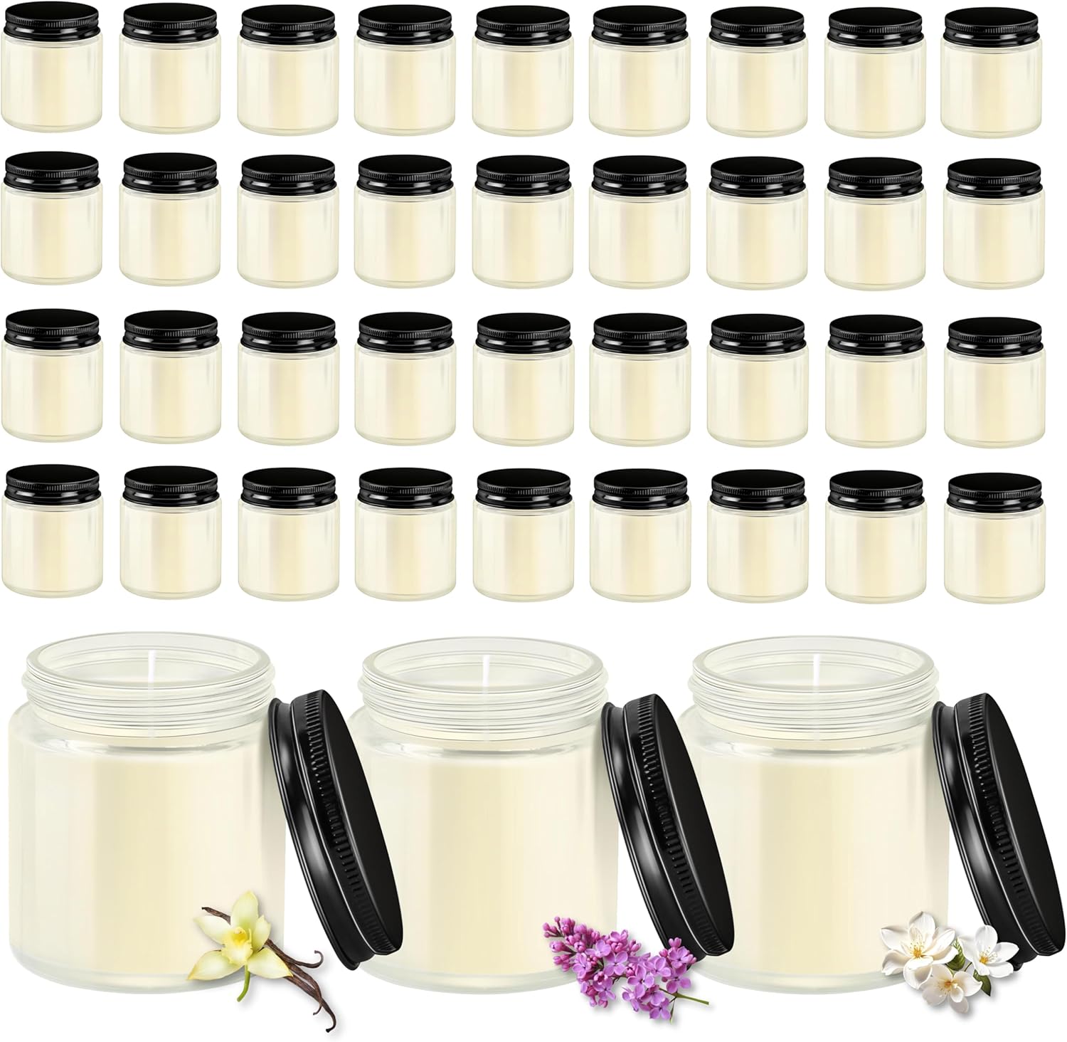 ACITHGL 36 Pcs 4oz Mini Mason Jar Candles Small Scented Candles Bulk Aromatherapy Ideal Souvenir Favors for Wedding Birthday Party (Vanilla, Lilac, Gardenia, Black)