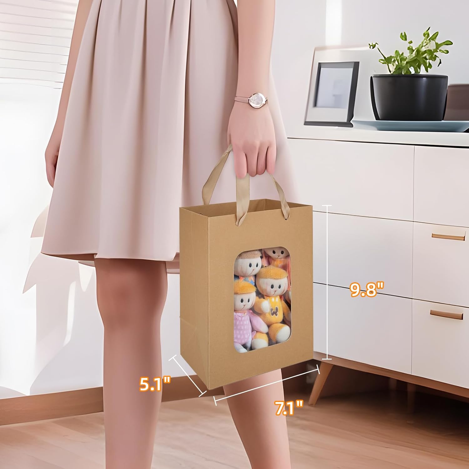 MOXARYSU 12 Pcs Brown Gift Bags with Clear Window: 9.8x5.1x7.1 Inch Medium Kraft Paper Bags with Handle For Party Business Birthday Wedding