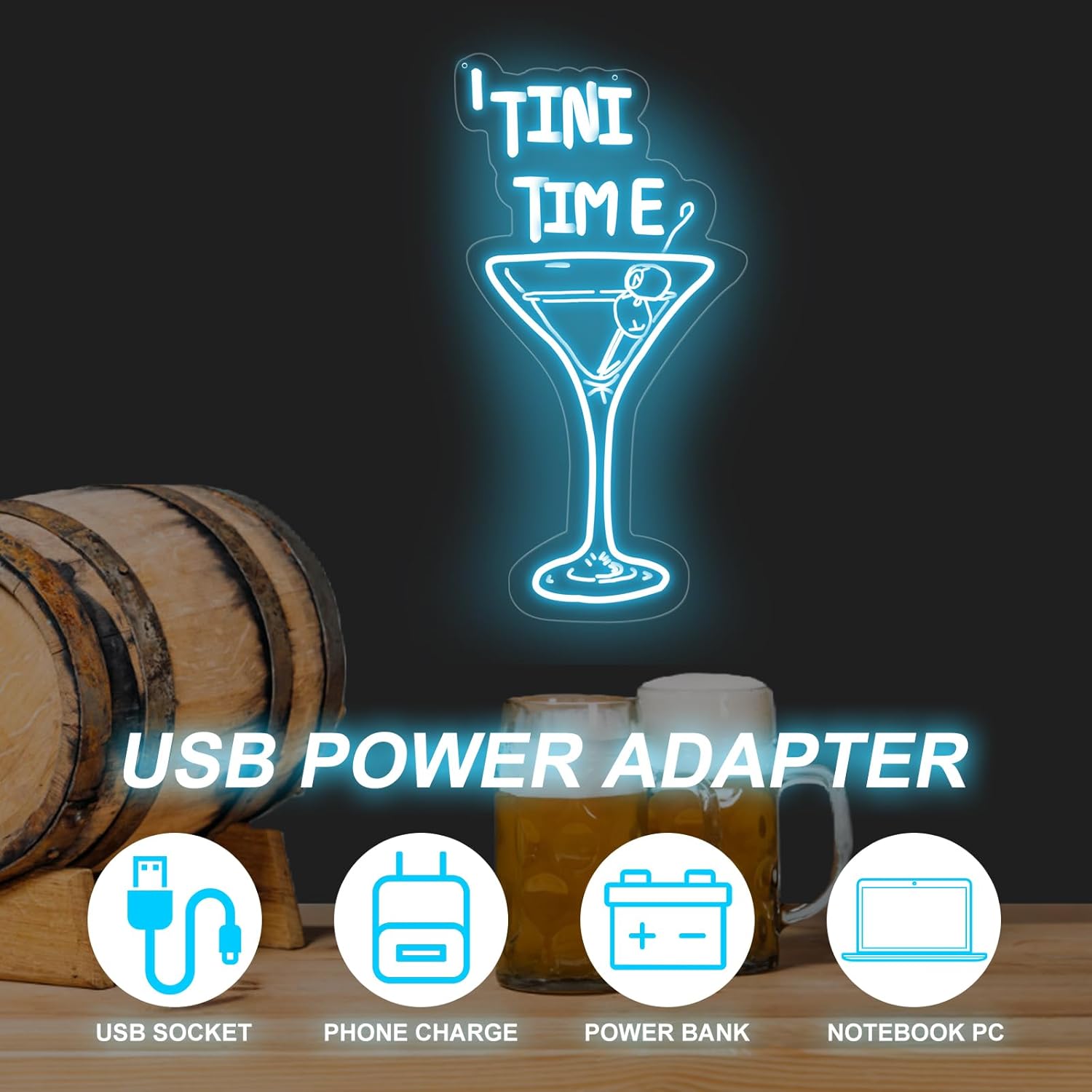 Tini Time LED Neon Sign, Martini Neon Sign for Bars, Elegant Cocktail Glass Neon, Martini Cocktail Bar Wall Decor, Bar Wall Art, Pub neon, 16.5"x8.7", Ice Blue