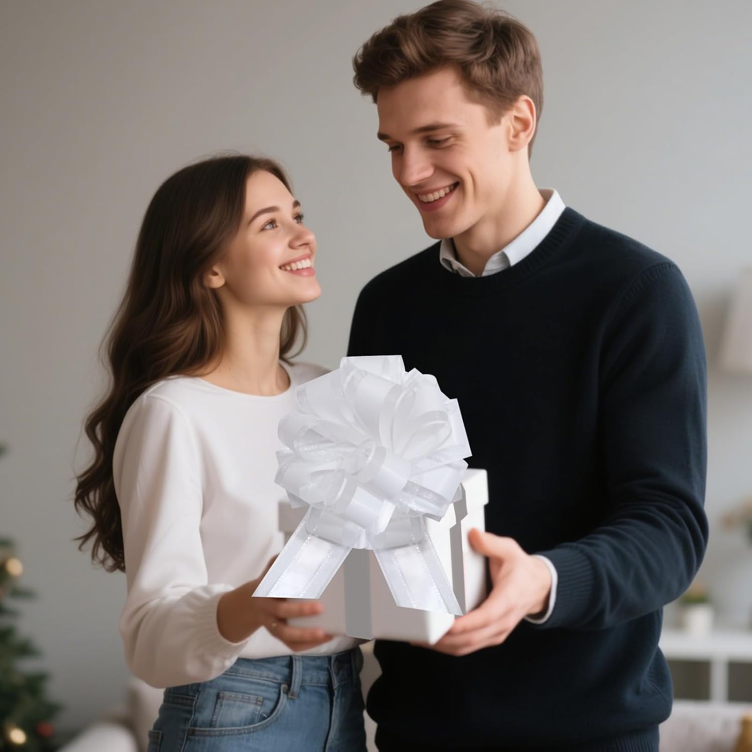 12 PCS 6 Inch Large Pull Organza White Bows - Perfect for Gift Wrapping, Wedding Decor, Car Bows, Birthday Parties, Christmas and Valentine's Day