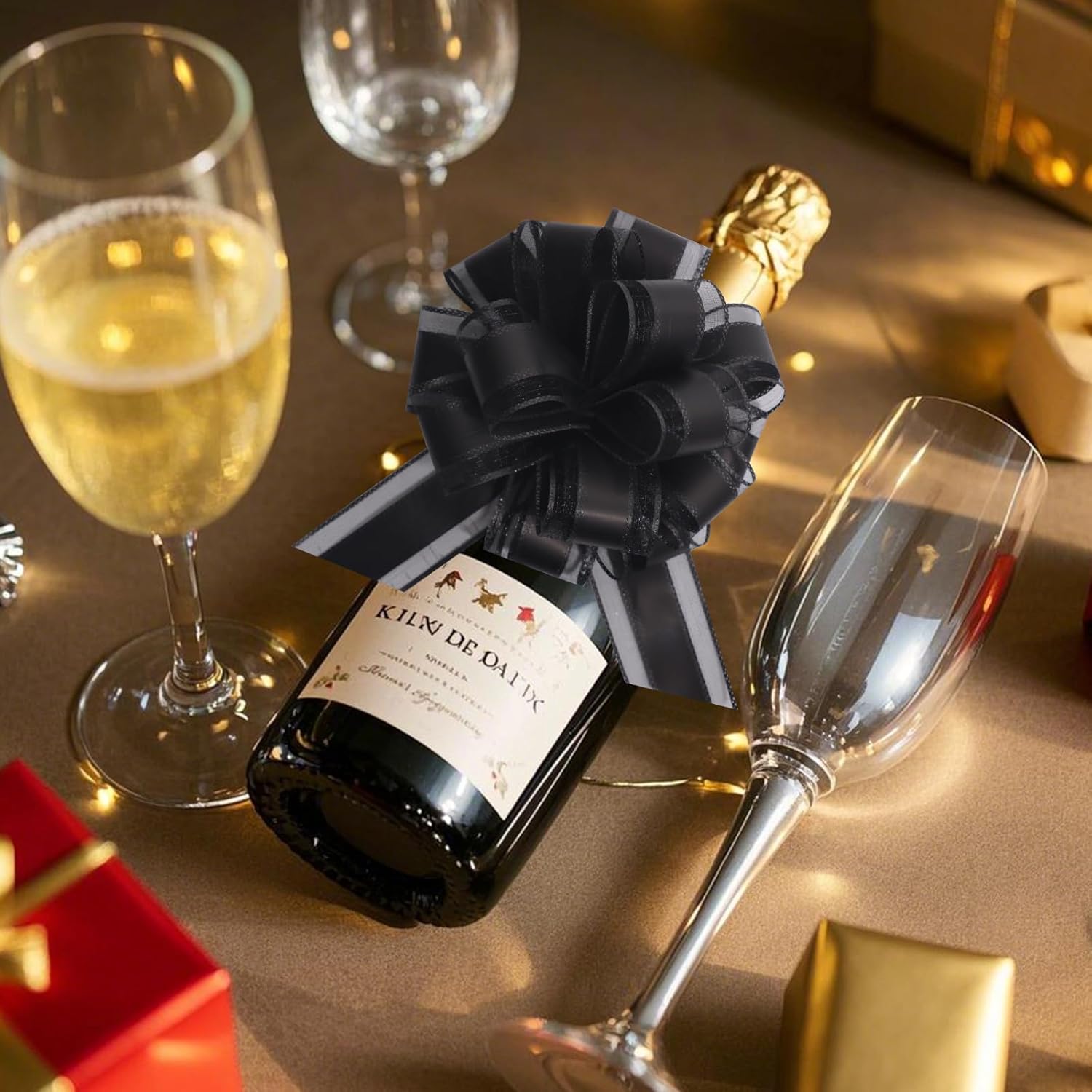 12 PCS 6 Inch Large Pull Organza Black Bows - Perfect for Gift Wrapping, Wedding Decor, Car Bows, Birthday Parties, Christmas and Valentine's Day