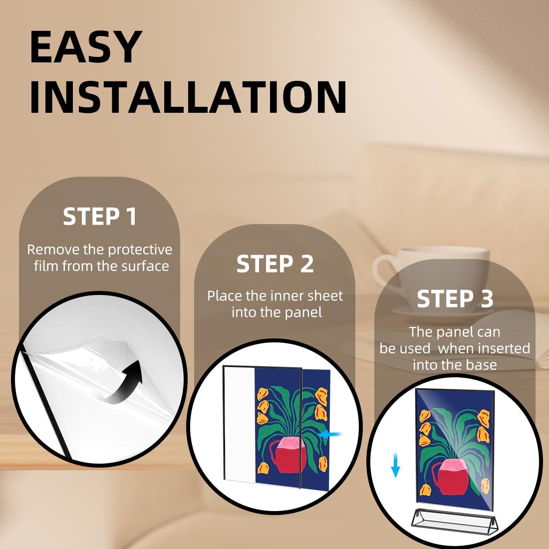 - [Standard Size Sign Stand] PPH-Sisy acrylic sign is fully compliant with the size standard of 5x7 inches,which can provide a good visual effect for your photos or documents (Note: Please tear off the protective film before use)