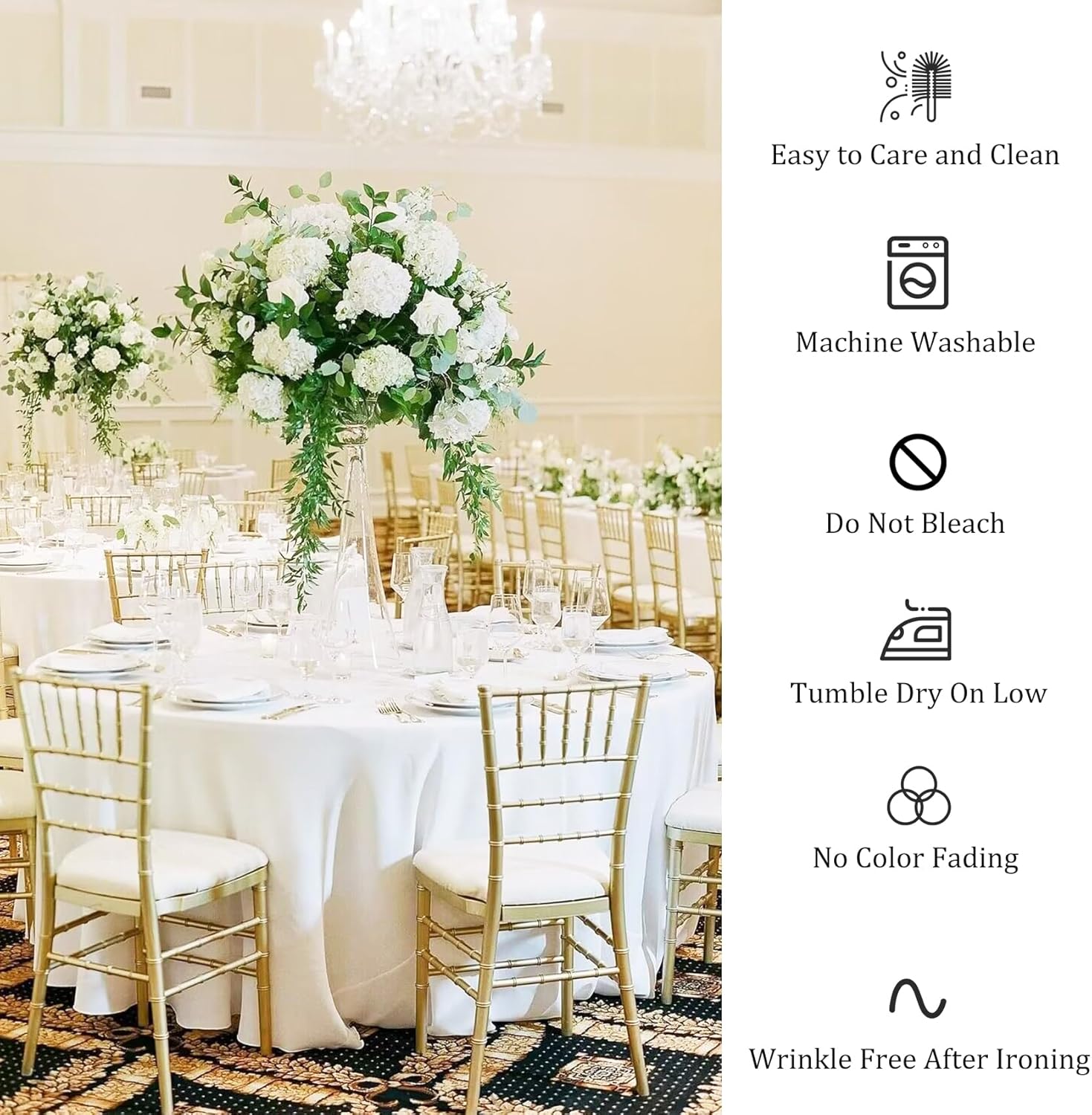 - Package Include: you will get 12 pieces white polyester round tablecloth, enough quantity is suitable for wedding banquets and various parties, the size of each tablecloth is approximately 90 inches / 229 cm, which is large enough to cover 30" or 45" round tables, classic in color and exquisite in design, the solid color makes them suitable for various occasions, instantly heightening the elegance of your table.