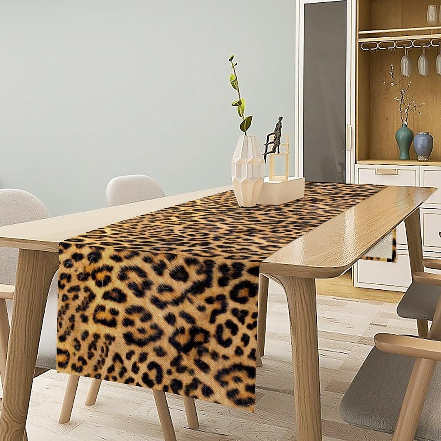Leopard Print Dinning Table Runner, Cotton Linen Rustic Cottage Country Farm Safari Wildlife Fur Print Table Runners for Table Dresser Runner Dinning Kitchen Party Holidays Home, 13x120 Inch