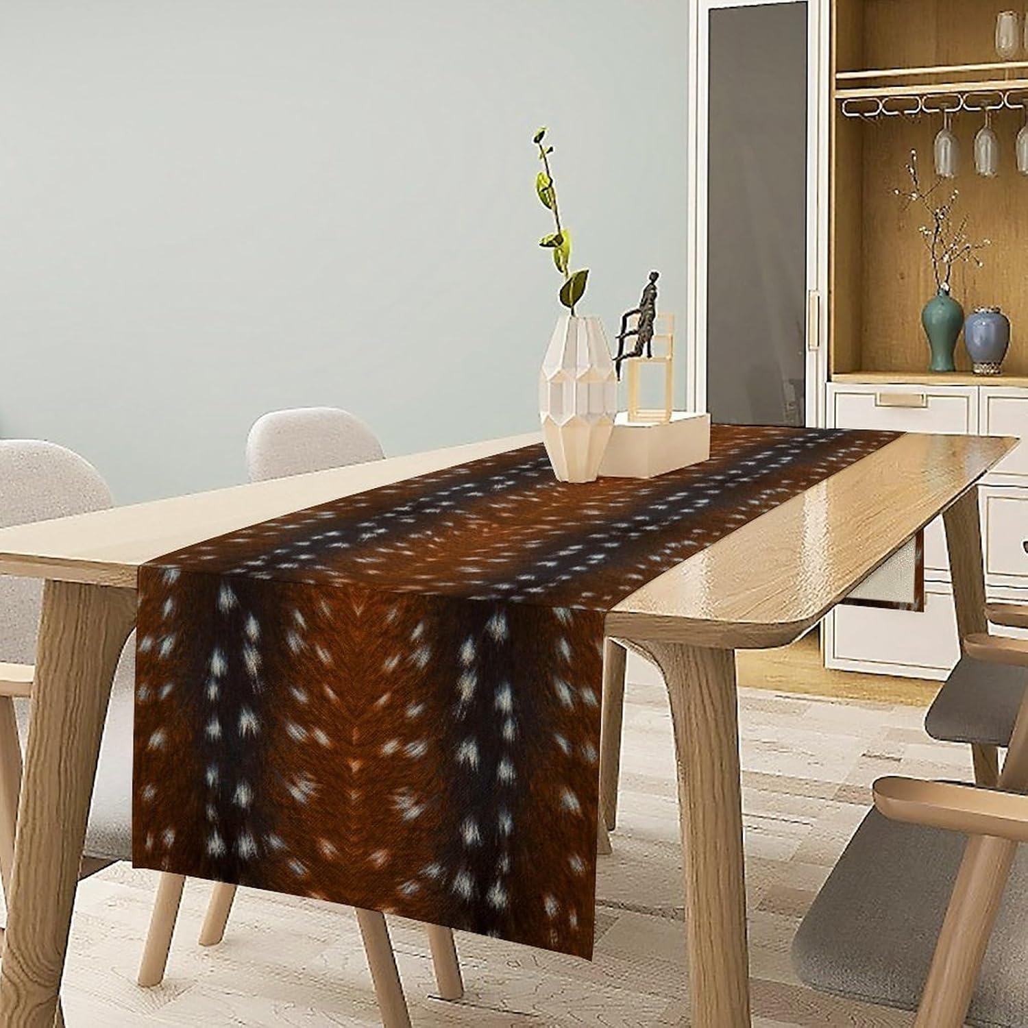 Deer Skin Table Runner Brown Fur Runner Black White Elk Deer Print Fur Western Print Cotton Linen Cottage Dinner Table Runners for Dining Room Kitchen Table Setting, 13x60 Inch