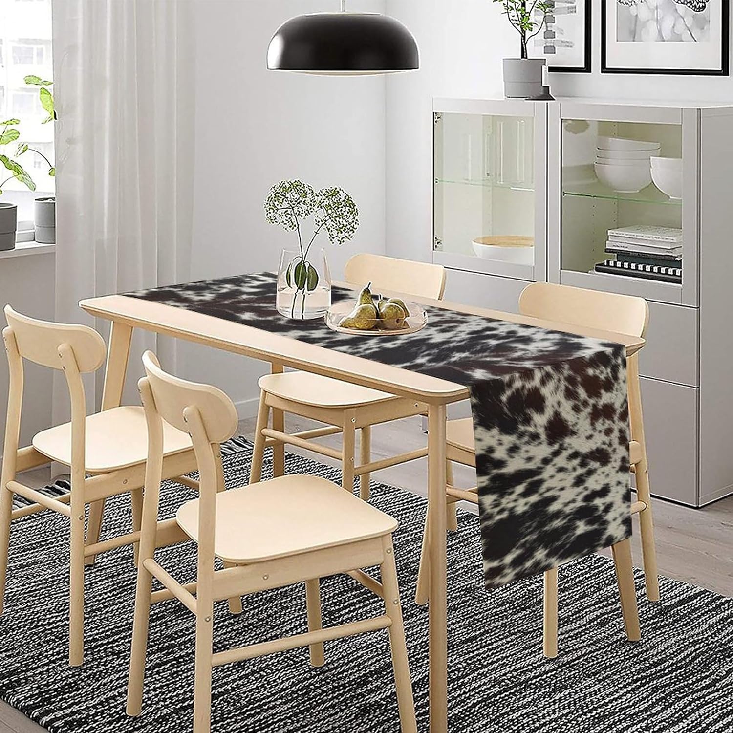 Cow Print Table Runner, Country Farm Animal Fur Skin Pattern Western Style Black Brown Cowhide Print Dinner Runner for Home Kitchen Dining Home Setting, 13x90 Inch