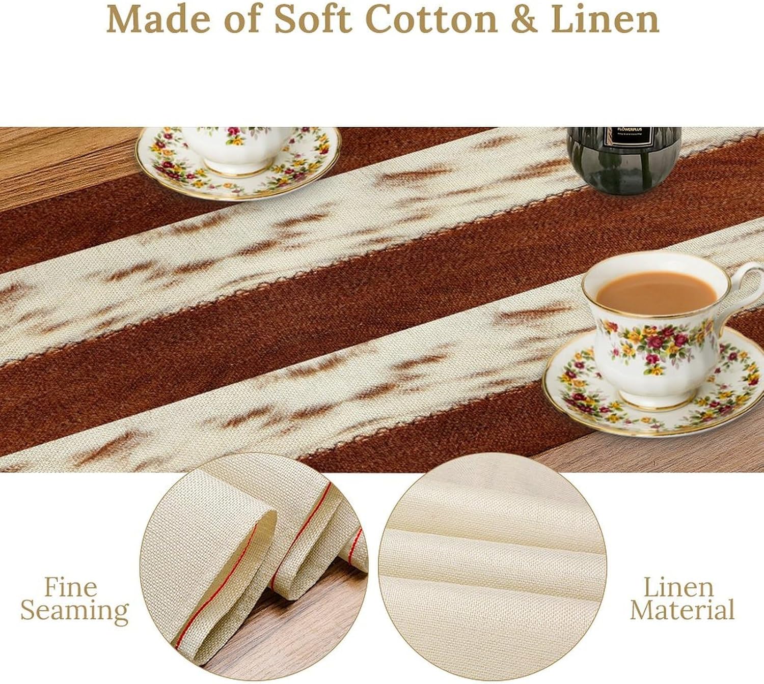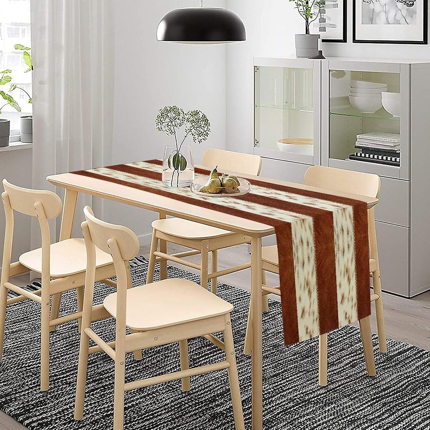 Cow Patchwork Print Table Runner, Brown Country Farm Animal Fur Skin Farm Safari Wildlife Pattern Table Runner for Dinner Dinning Home Kitchen Living Room Party Holidays Setting, 13x70 Inch