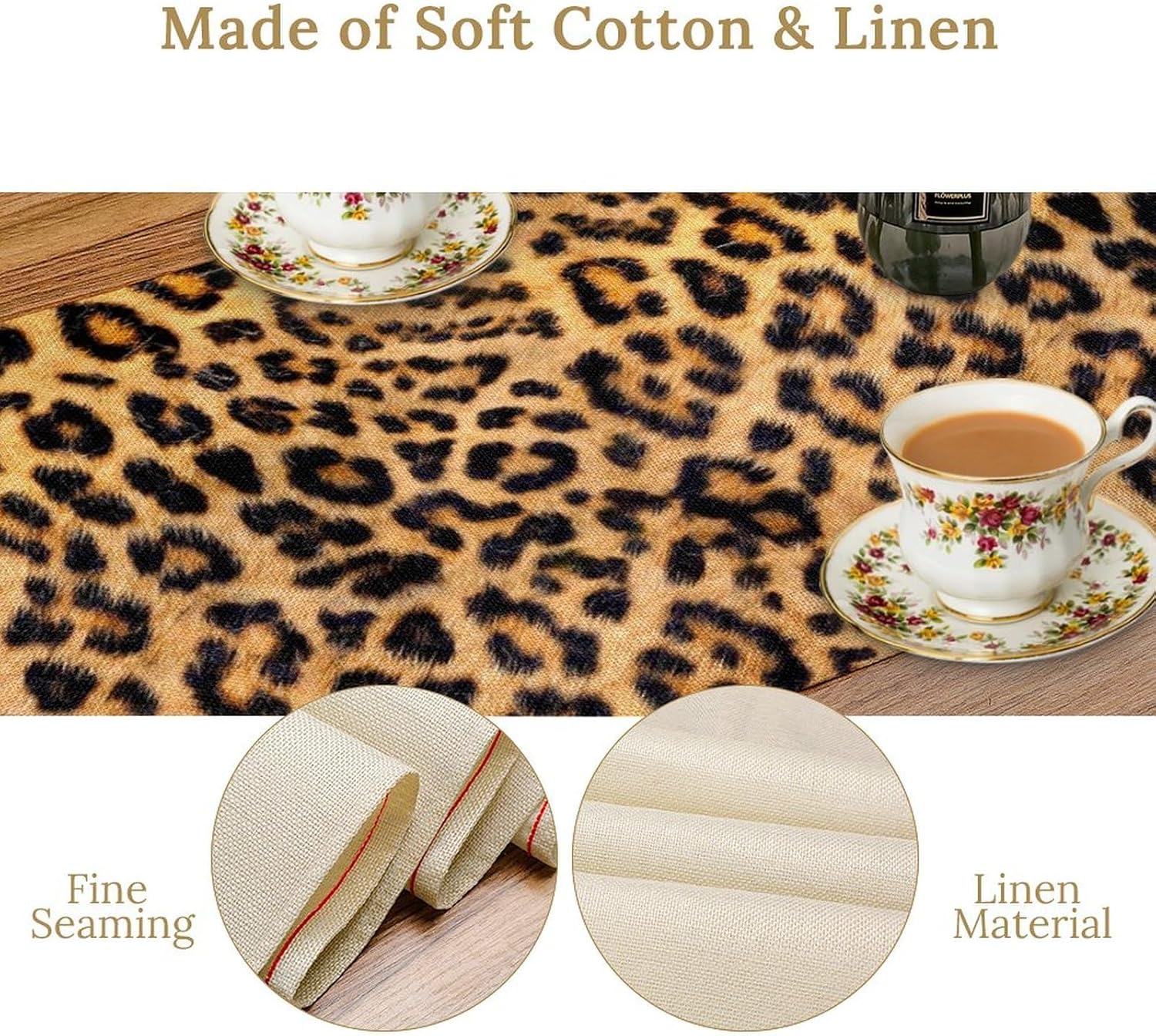 Leopard Print Dinning Table Runner, Cotton Linen Rustic Cottage Country Farm Safari Wildlife Fur Print Table Runners for Table Dresser Runner Dinning Kitchen Party Holidays Home, 13x108 Inch