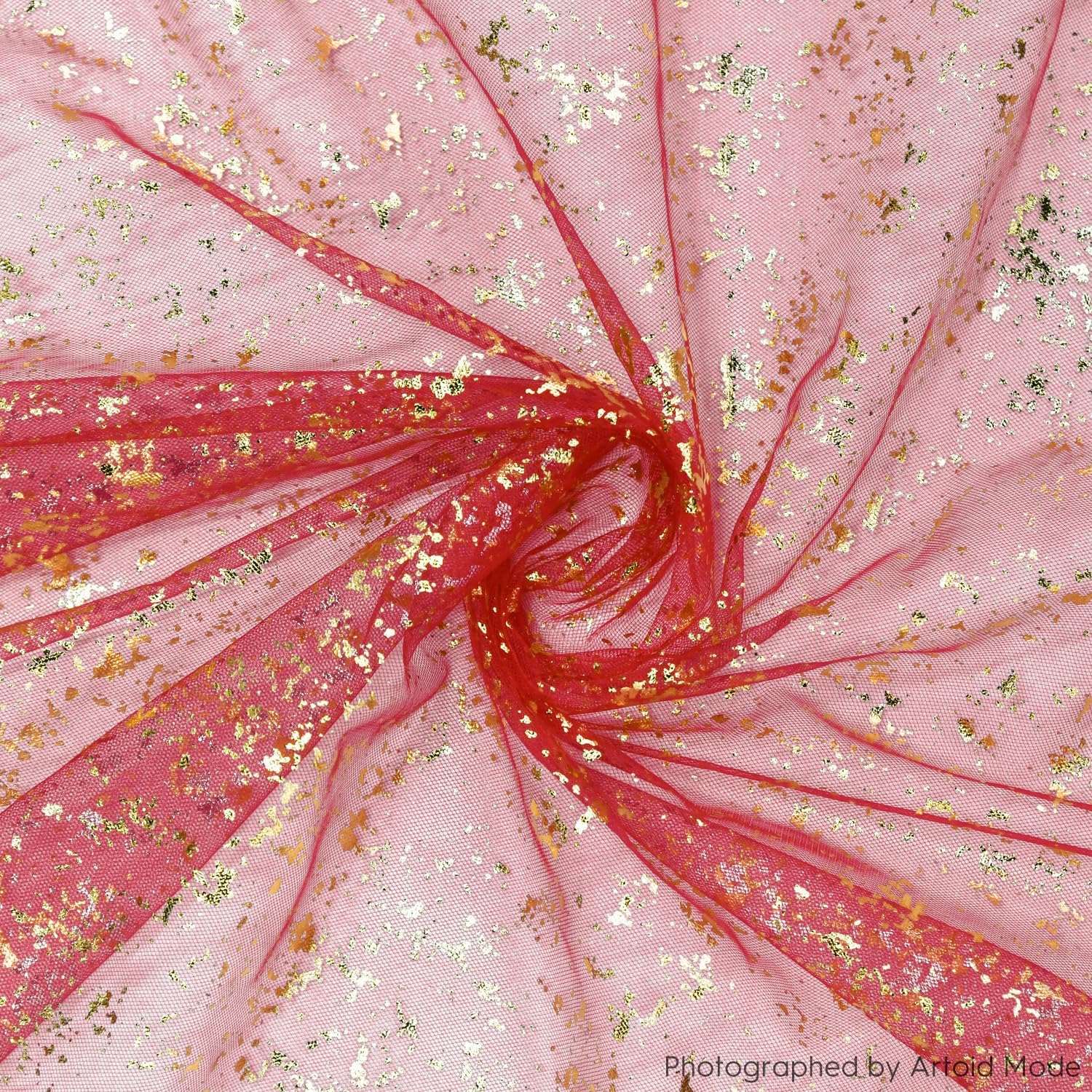 Artoid Mode 3PCS Red Gold Gauze Table Runner 120 Inch 10FT, Glitter Metallic Foil Sheer Dining Wedding Anniversary Holiday Table Decor for Home Party