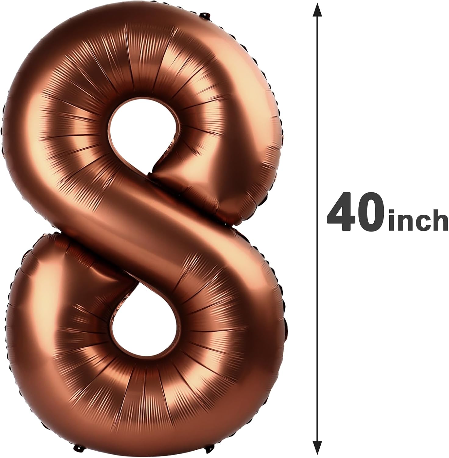 - 1.Make Party Charming with Dark Brown Number Balloon: You will receive an uninflated 40 inch number 8 balloon. Big number balloons are always the best statement of romance and surprise. Coffee brown balloons symbolize vitality exoticism, adding glamour to birthday parties.Bright metallic dark brown and huge size make coffee balloons a highlight of special parties. Choose one or more numbers from 0-9 birthday numbers,and use 8 18 28 38 48 58 68 78 80 98 balloon numbers to create a charming party!