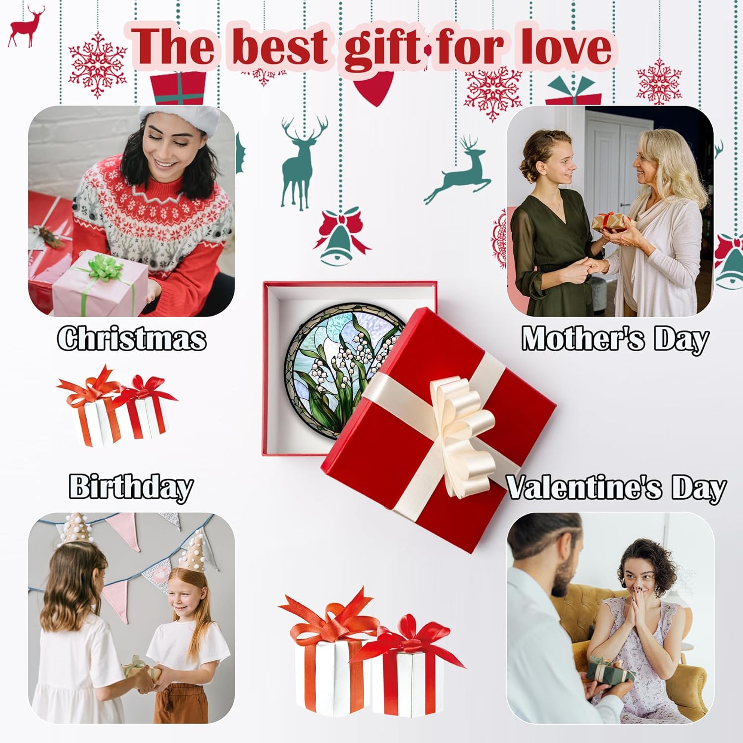 Stained Glass Window Hanging, White Green Lily of The Walley Flowers Sun Catcher for Door Home Decor Plants Suncatcher Christmas Mother's Day Birthday Gifts for Women Men Mom Nana 9.8 in