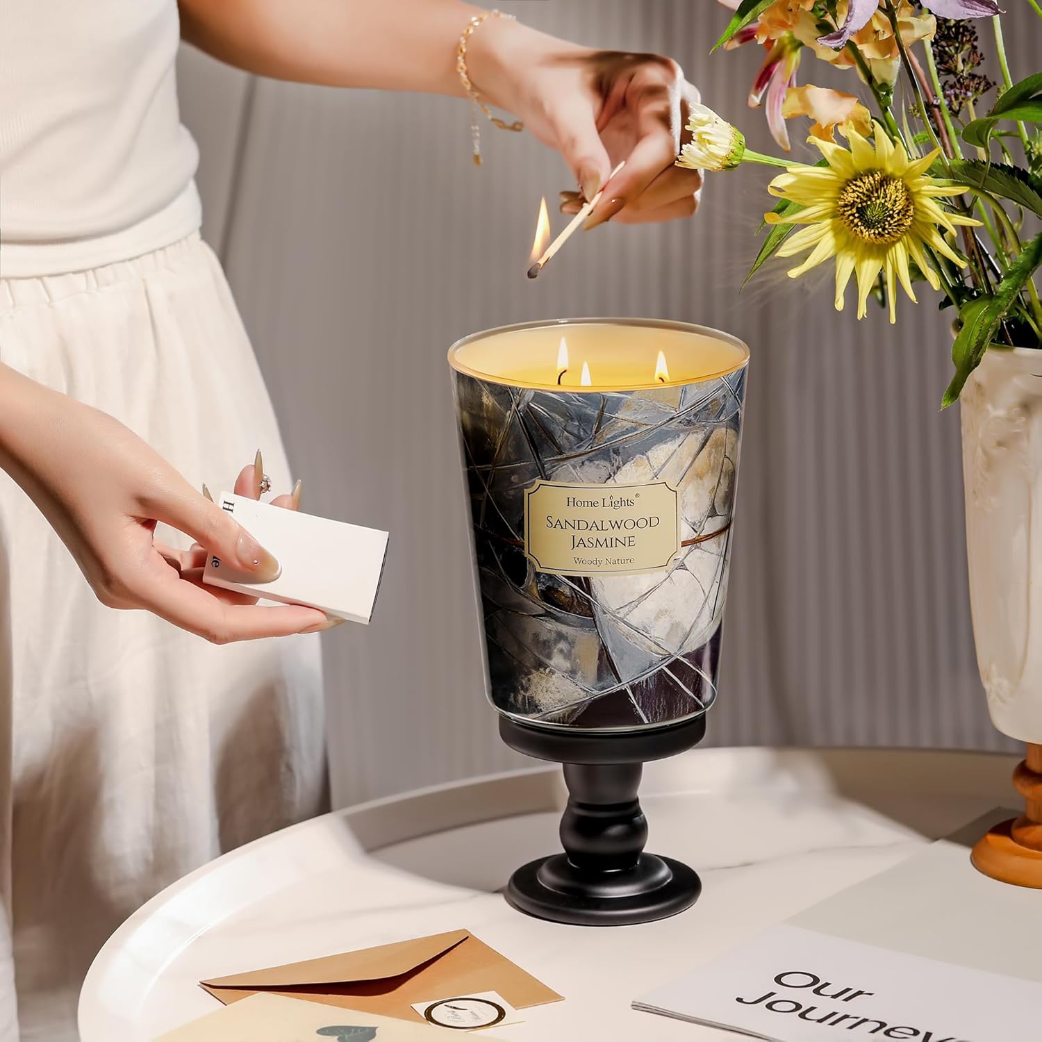 HomeLights Soy Wax Candles for Home Scented, 3-Wick Candles in Sandalwood Jasmine Scented, Industrial Chic Aromatherapy Candles Gift for Parties, Relaxing, 34oz