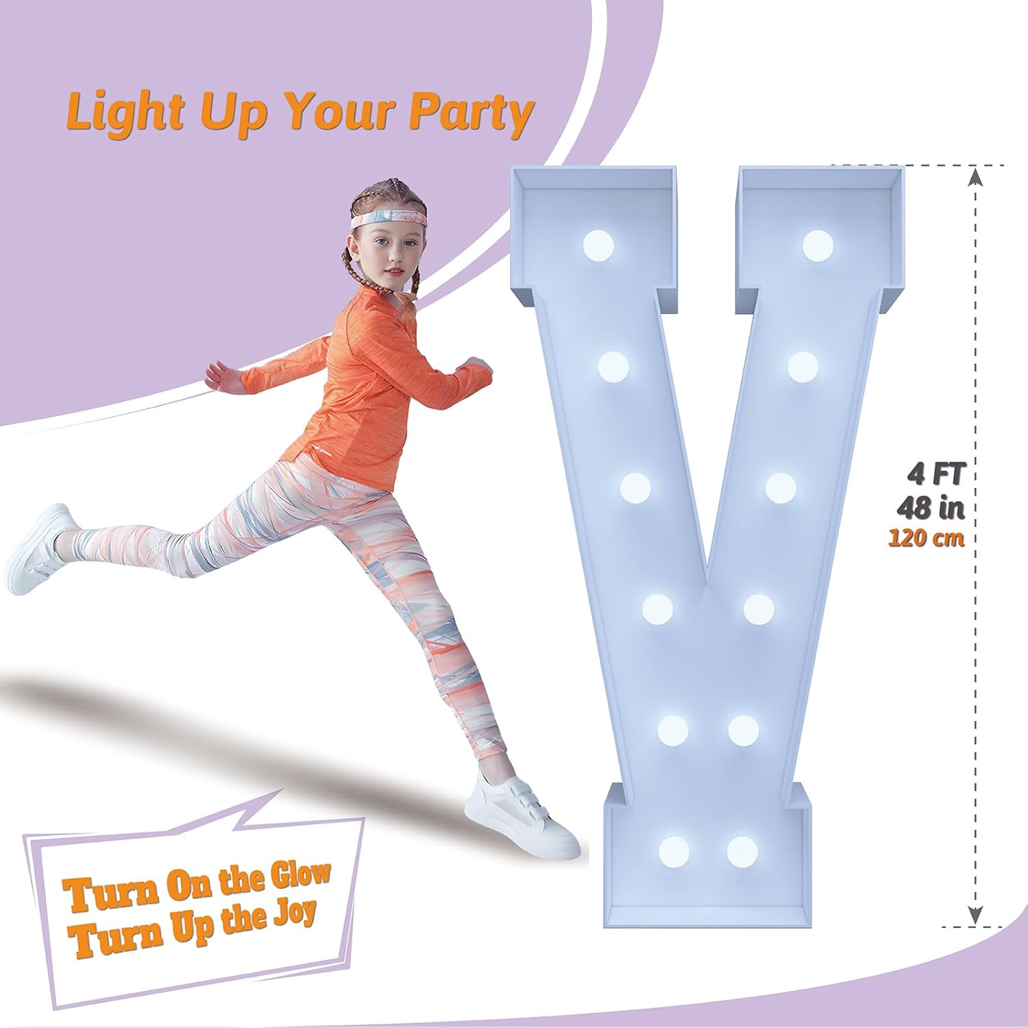 4FT Marquee Light Up Letters V – Cool White LED, Easy to Assemble Foam Board with Back Support, Large Marquee Light Up Letters for Birthday, Wedding, Party, Anniversary, Baby Shower Decor