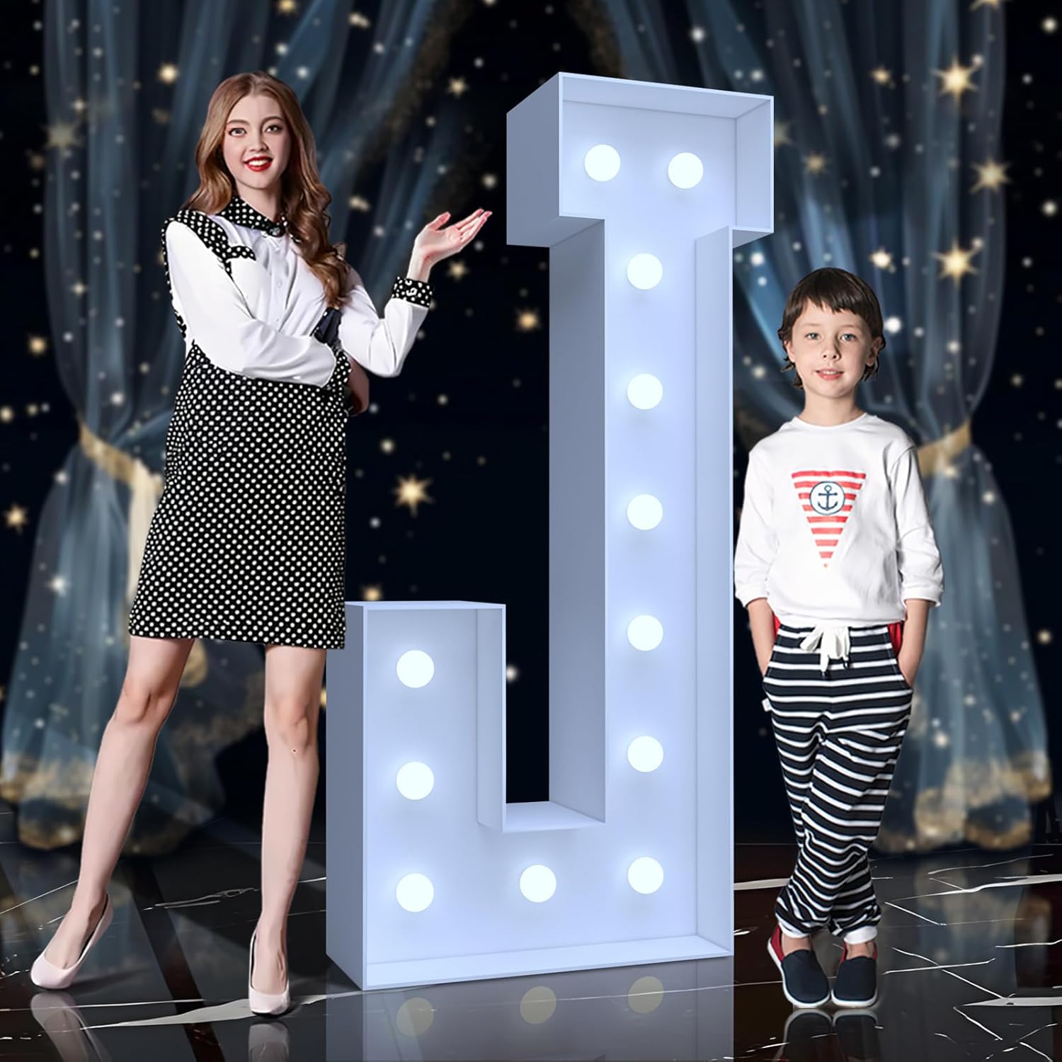 4FT Marquee Light Up Letters J – Cool White LED, Easy to Assemble Foam Board with Back Support, Large Marquee Light Up Letters for Birthday, Wedding, Party, Anniversary, Baby Shower Decor