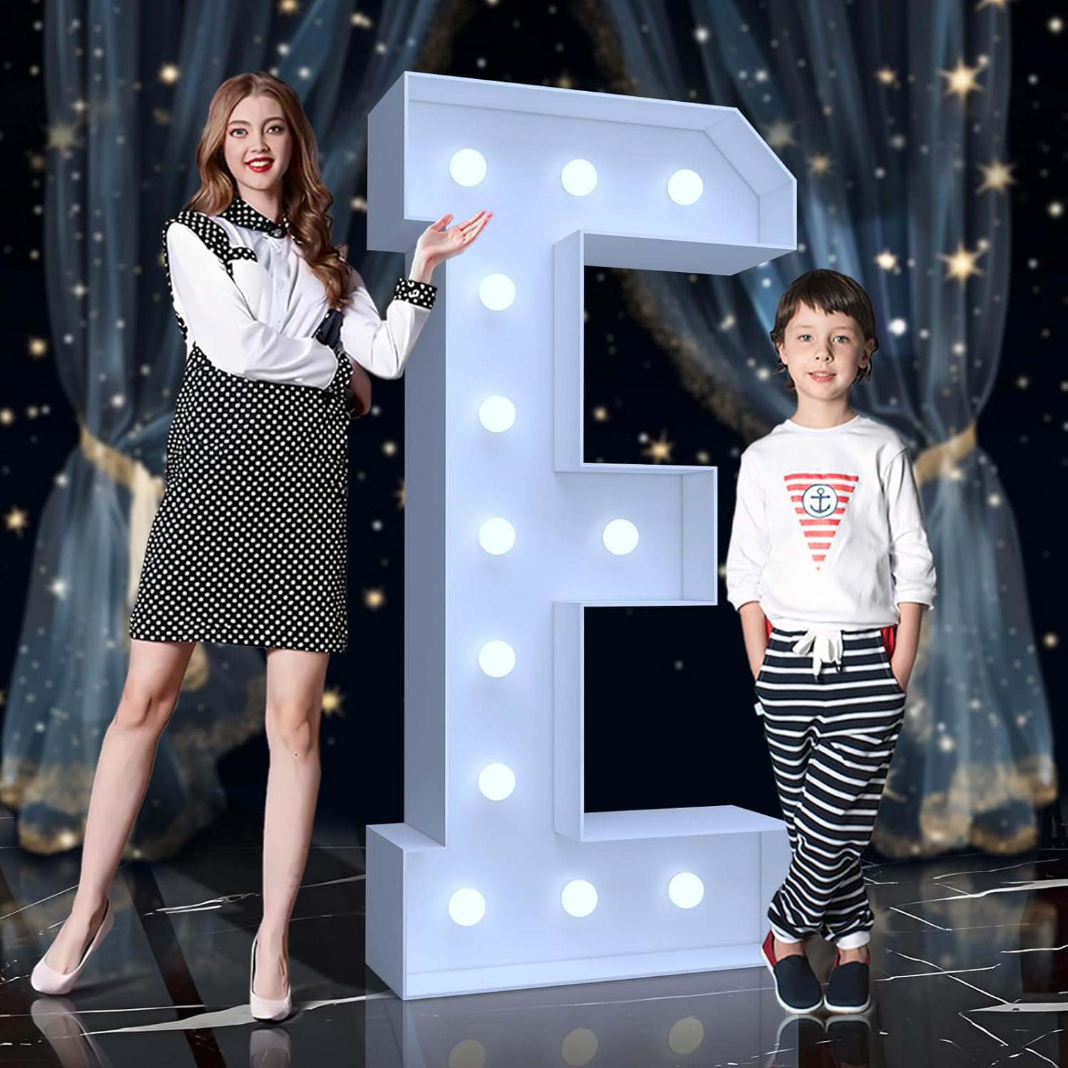 4FT Marquee Light Up Letters E – Cool White LED, Easy to Assemble Foam Board with Back Support, Large Marquee Light Up Letters for Birthday, Wedding, Party, Anniversary, Baby Shower Decor