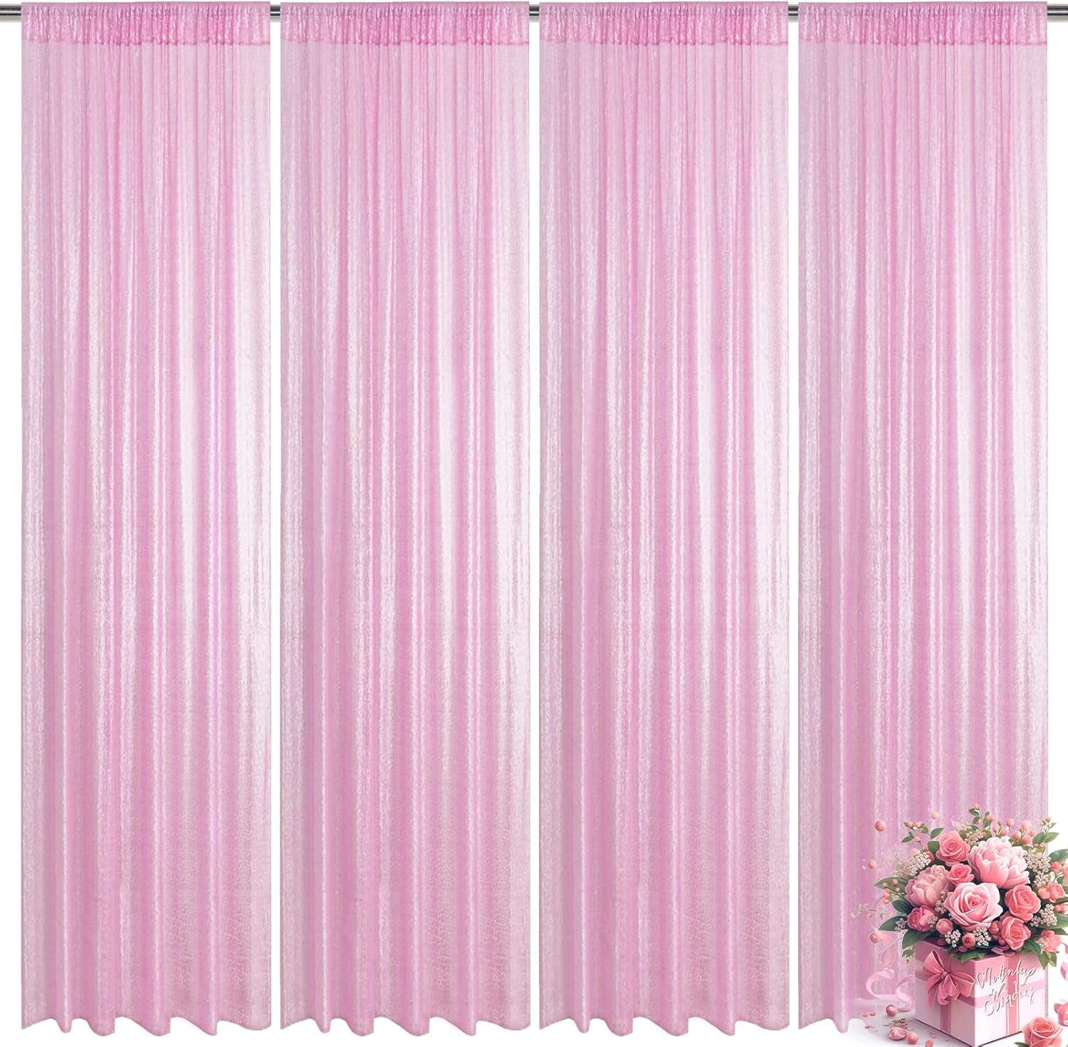 - Package Include: 4Pcs 2FT Wide X 8FT Height sequin backdrop curtain with a 4-inch wide rod pocket on the top, which is easy to install.