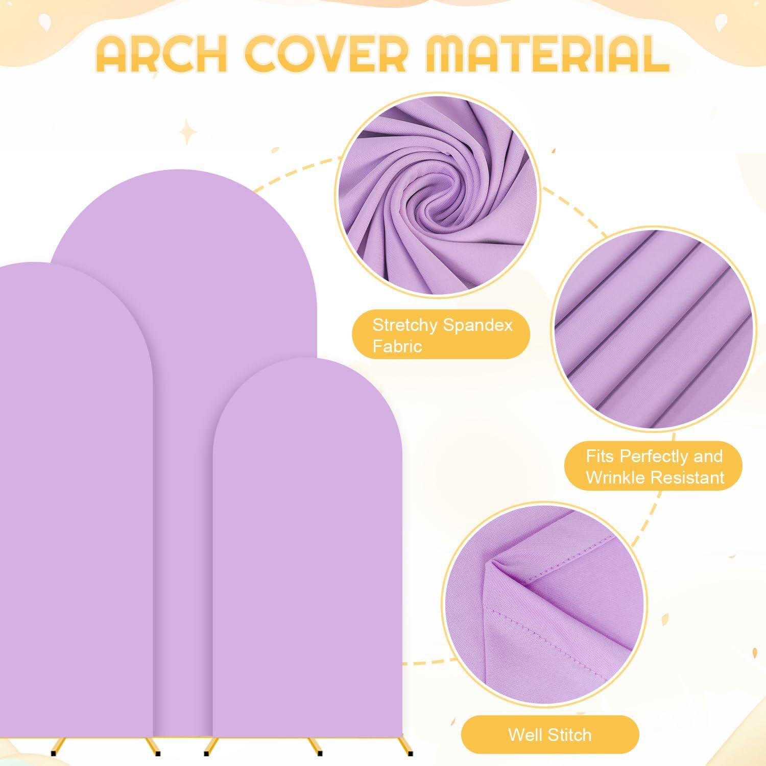 Set of 3 Arch Backdrop Stand and Wedding Arch Cover 6FT, 5FT, 4FT Stable Arches Stand Backdrop Metal Arched Frame Lavender Cover Balloon Arch Stand and Cover Set for Bridal Baby Shower Event Decor
