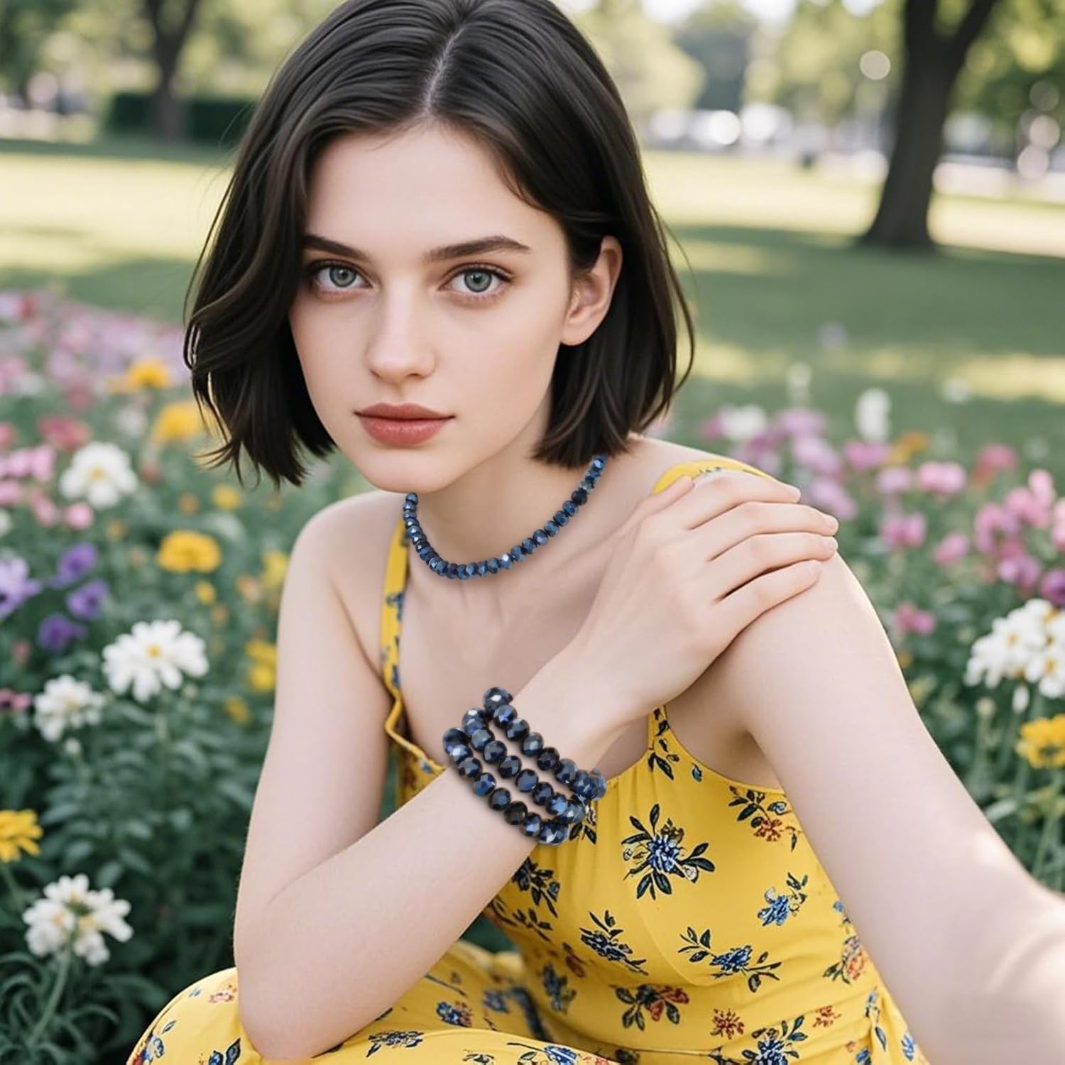 460Pcs 8mm Crystal Glass Beads for Jewelry Making Beads for Bracelets Necklace Pendants Making Supplies(Navy Blue)