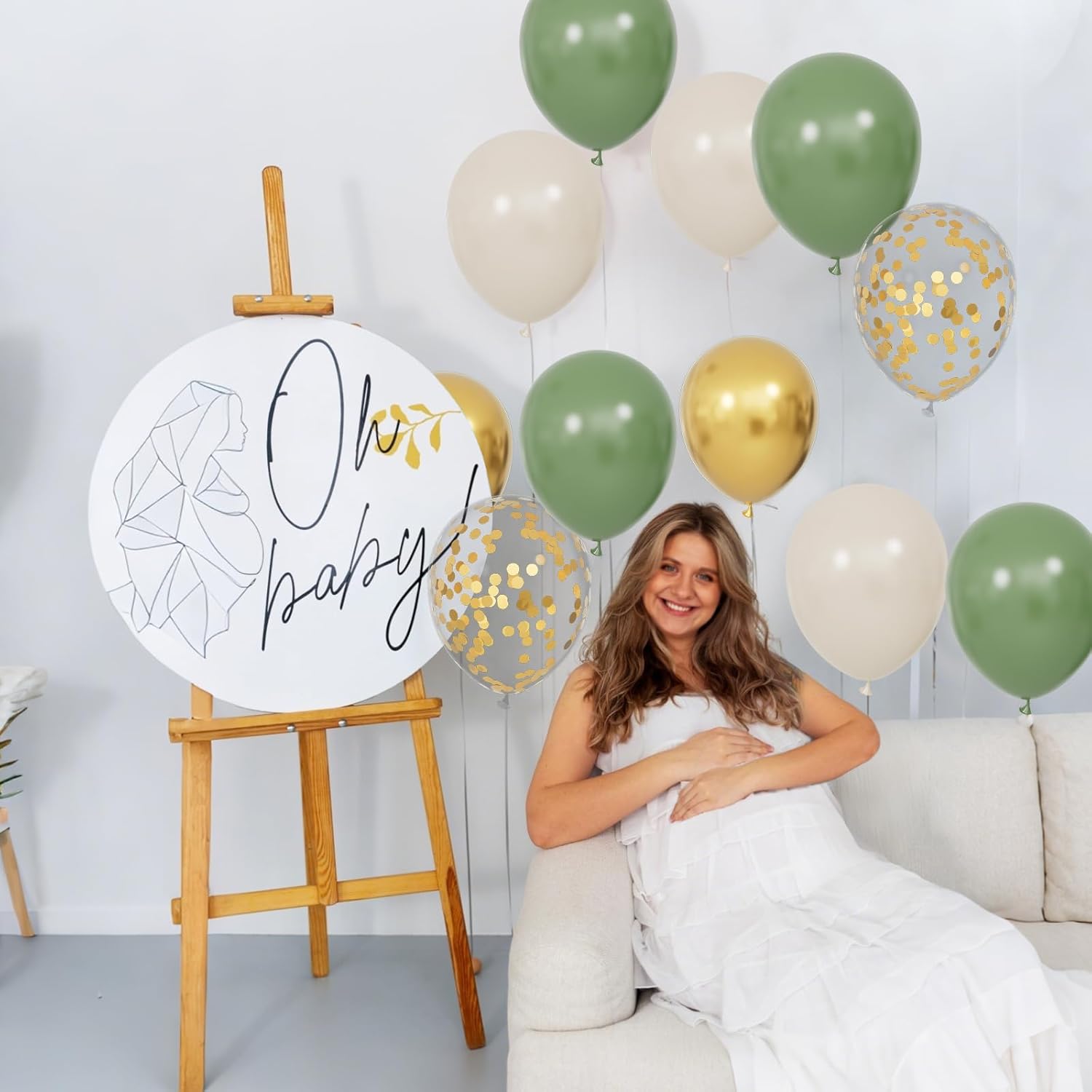 - ⨠Sage green baby shower decorations :The gold balloons in party balloons have a metallic sheen and are filled with gold confetti that catches the light beautifully, adding depth and celebratory luster to your decor.