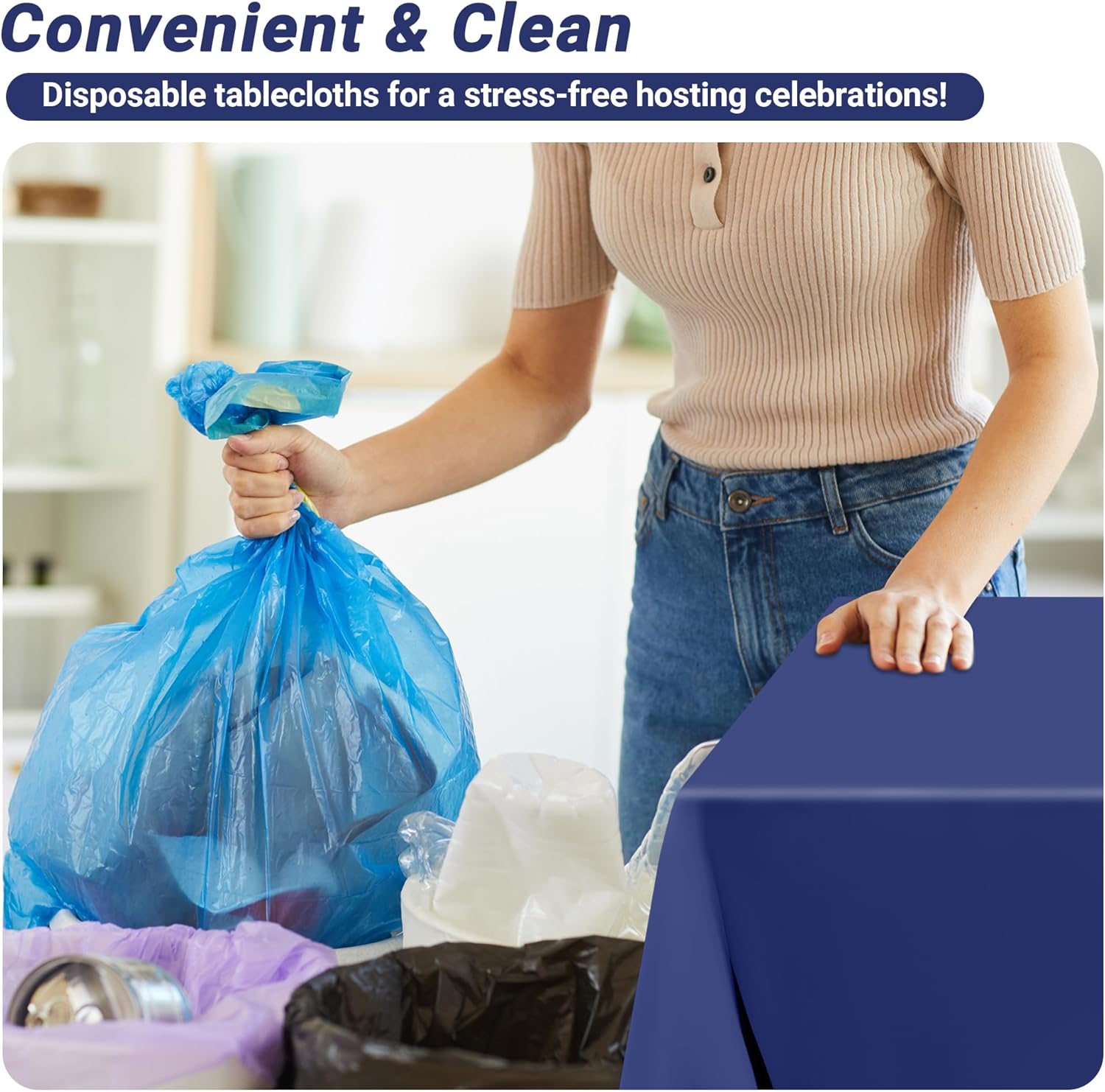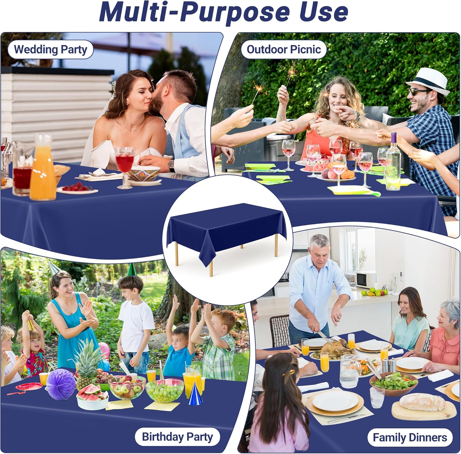 - Versatile Use: This elegant navy tablecloth effortlessly adapts to any occasion—from basketball party decorations and festive outdoor gatherings to nature-themed celebrations. Crafted for both style and practicality, our plastic tablecloths blend sophisticated charm with unmatched versatility. Whether used as birthday party table decorations or repurposed for creative displays, they elevate every event with timeless appeal.