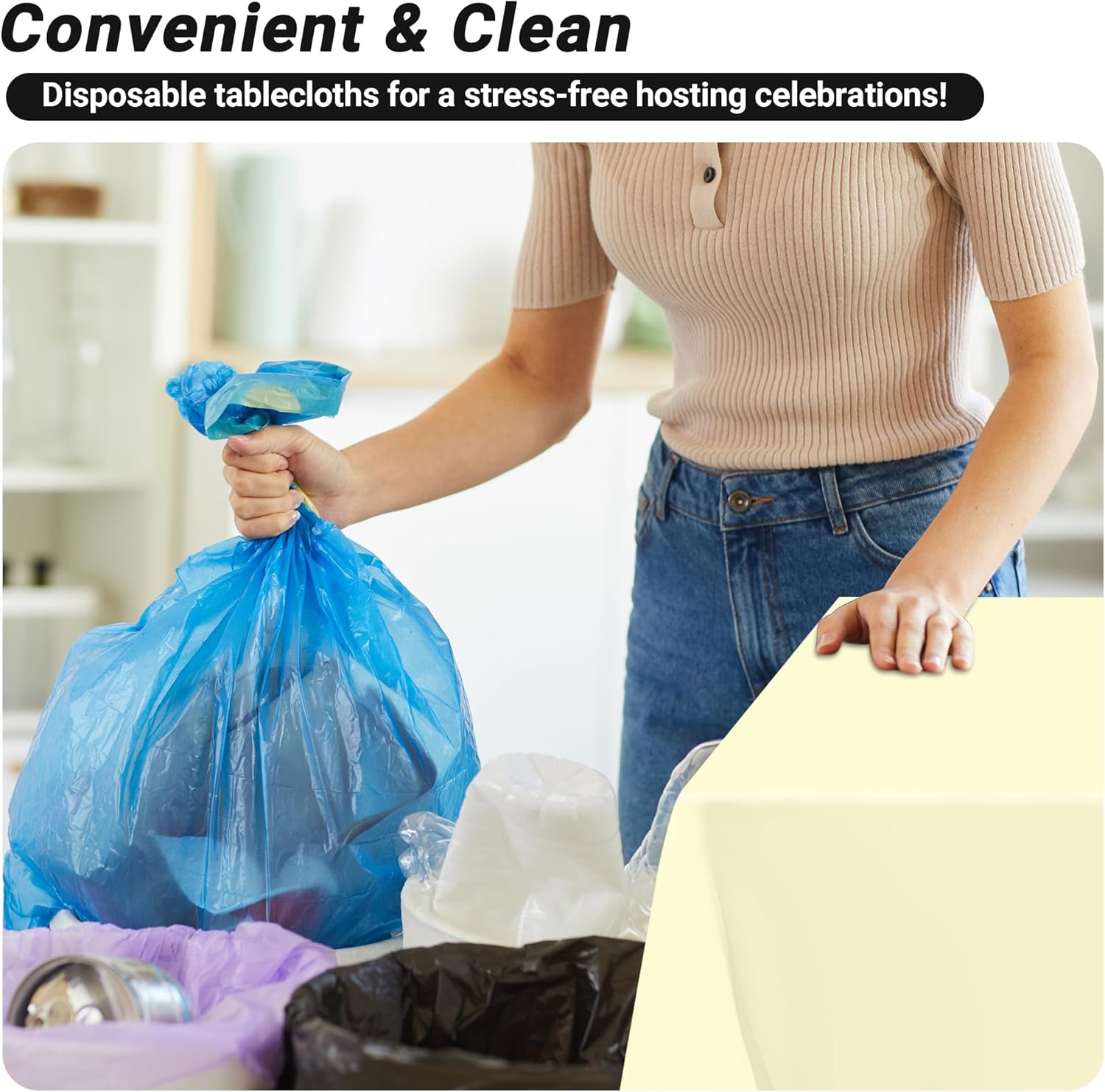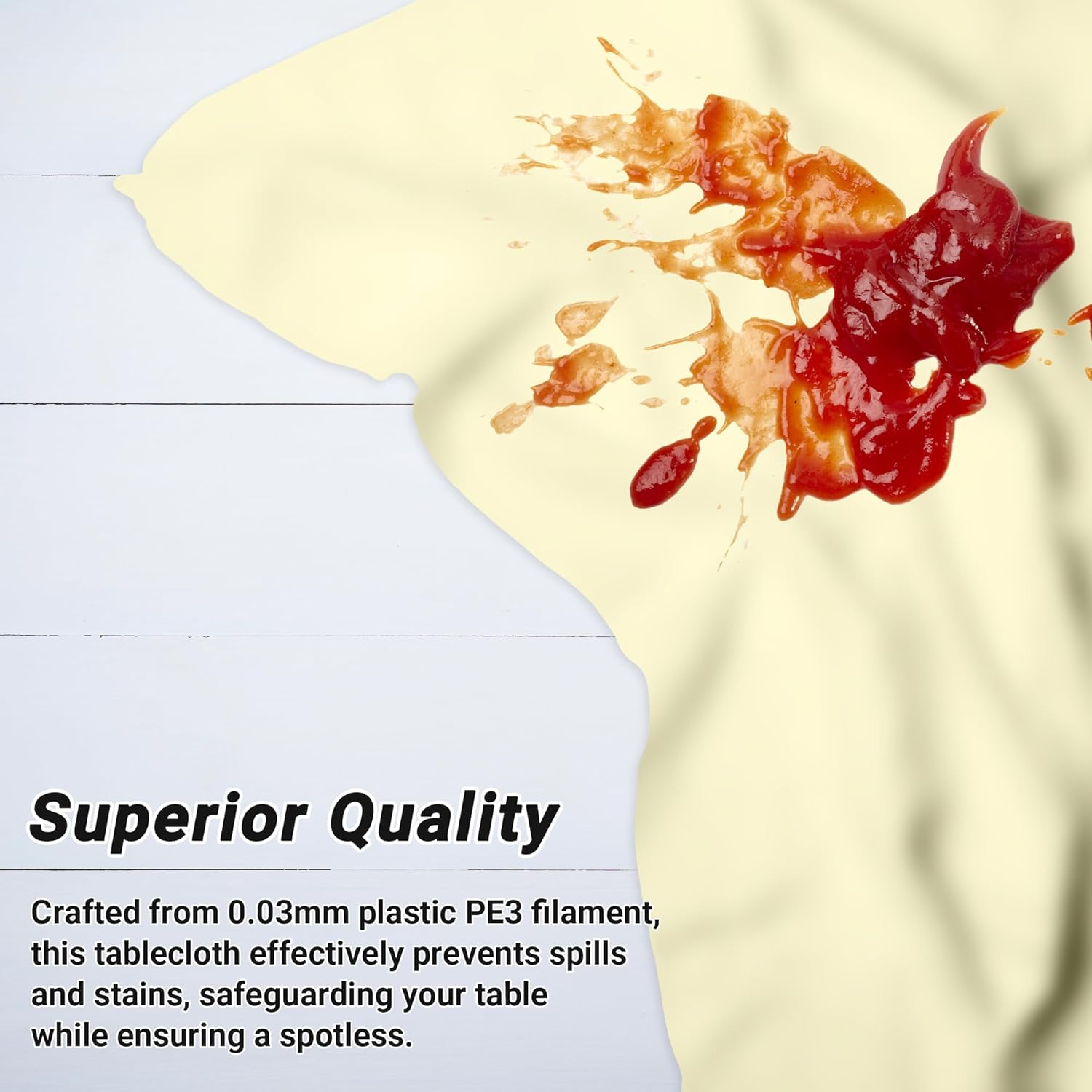 - Versatile Use: Beyond celebrations, this ivory plastic table cloth effortlessly transitions between diverse settings, blending practicality with aesthetic versatility. Whether indoors or outdoors, the understated elegance of a rectangle tablecloth elevates dining tables, buffet spreads, or temporary setups, while the solid construction of table cover ensures reliability across seasons and themes.