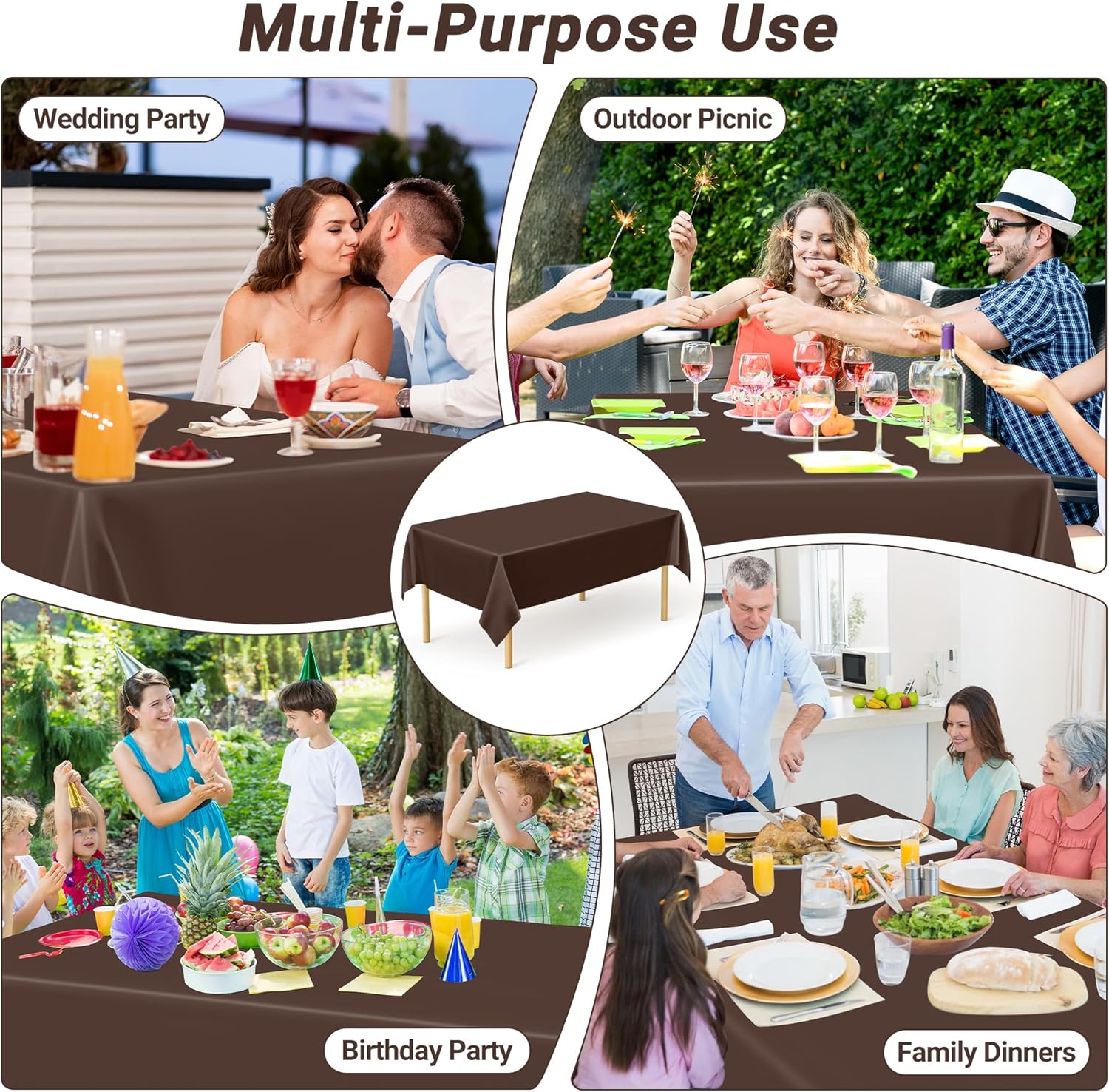 QZYL 4 PCS Plastic Table Cover, 54x108 Inches Waterproof Table Cover, Multiple Colors Brown Rectangle Tablecloth, Disposable Table Cloth for Camping, Anniversary, Picnic and Party Decorations