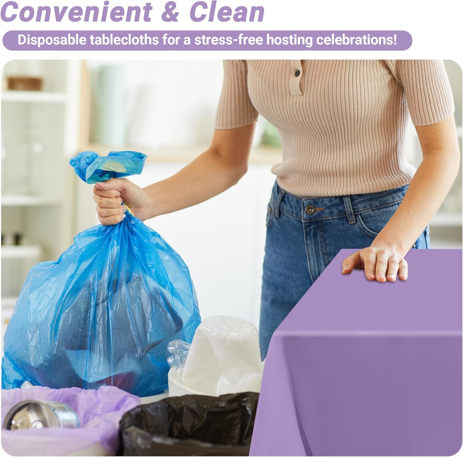- Versatile Use: Make every event effortlessly stylish with our versatile lavender table cover. This is a table protection and a practical splash guard for messy camping trips, festivals, outdoor and party decor—all in one elegant disposable table cloth. The soothing lavender hue square table cloths instantly elevates dessert displays and pastel-themed parties.