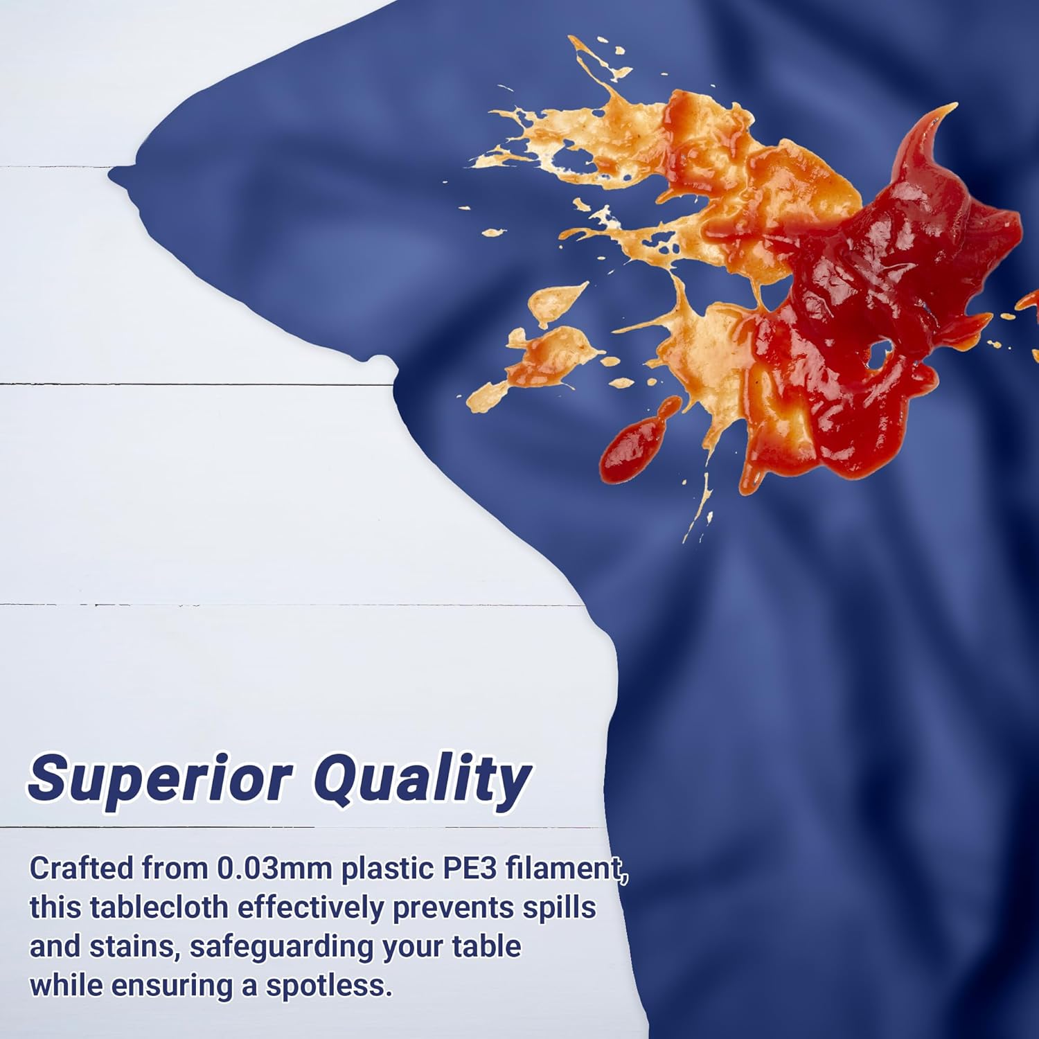 - Rich Color Collection: Choose from our vibrant selection of plastic table cloth to perfectly complement any celebration's theme or atmosphere. Elevate your event’s ambiance with our deep navy picnic table cover, which serves as a versatile centerpiece for BBQ party decorations or other party themes. The rich navy hue exudes refined charm, effortlessly complementing shimmering themes.