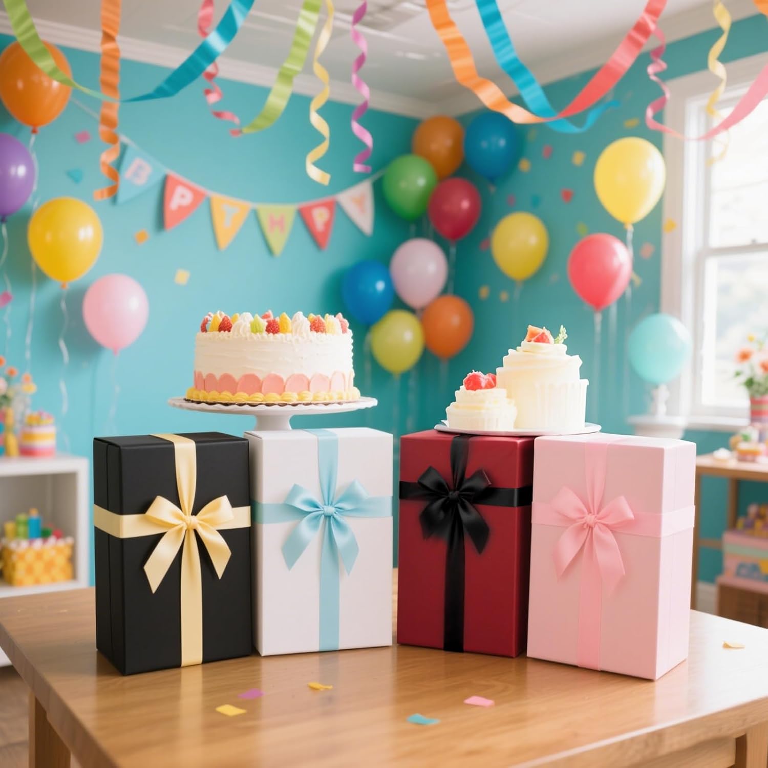 - Dimensions: Set of 5 gift boxes, each containing 1 Black gift box measuring 13.75 inches × 9 inches × 4.5 inches (35 cm × 23 cm × 11.5 cm), complete with ribbon, gift card, and envelope. This large gift box is suitable for snacks, cosmetics, perfume, jewelry, candles, mugs, souvenirs, and various other items.