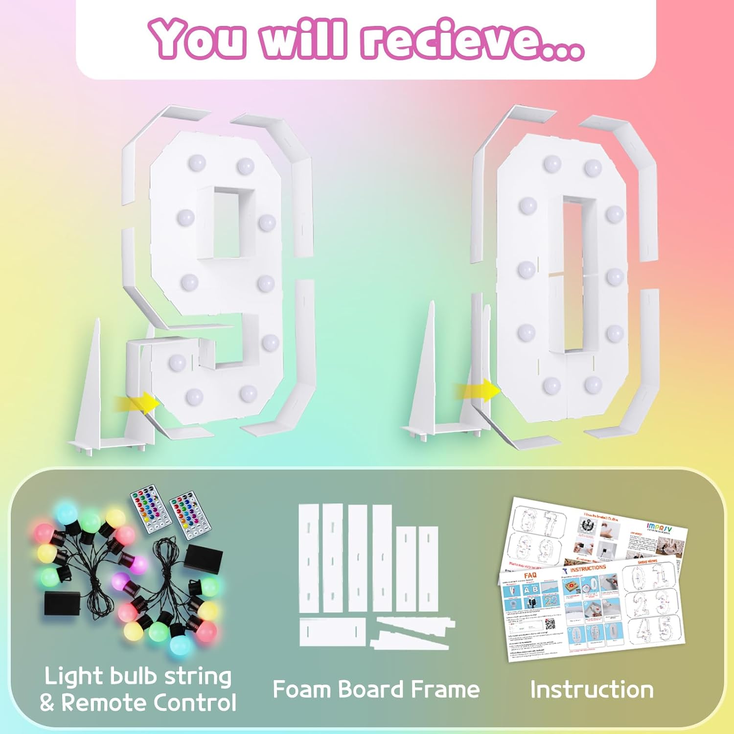 Marquee Numbers 90th-Birthday Decoration: Colorful 4FT Large Light Up 90 Year Old Birthday Decorations Anniversary Backdrop for Boys Girls Cardboard Sign 18 Colors Number 90 Mosaic Balloon Frame