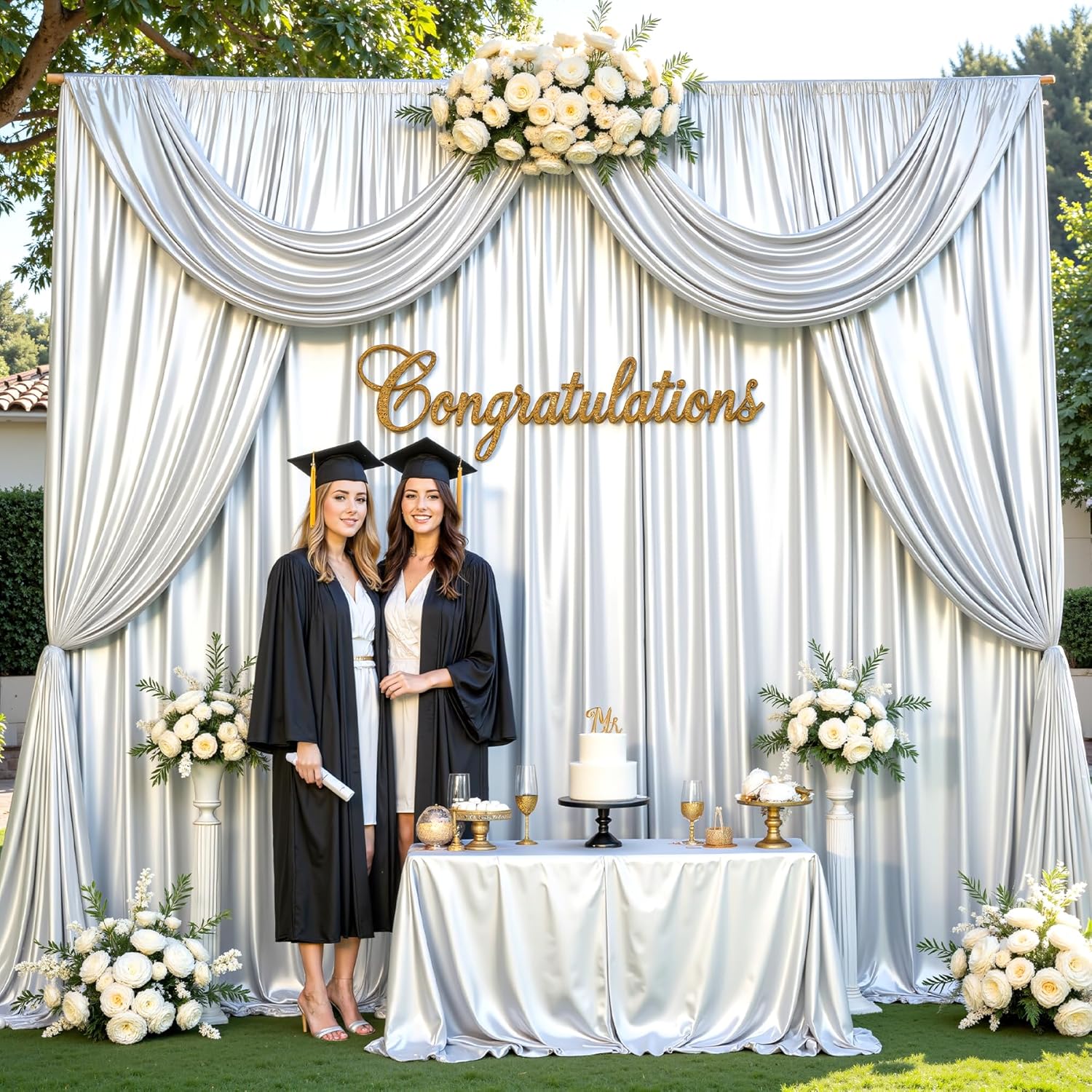 - Silver Sequin Backdrop Curtain Wide Compatibility:The shimmer silver drapes for backdrop is suitable for weddings, baby showers, birthday parties, Photography, anniversaries, graduations, home decor,also can be used as a live video background, selfie wall, or creative curtains.The 10X10 backdrop curtains match with balloons, banners,photo props,flower and other party decorations will make the scene more beautiful and elegant.