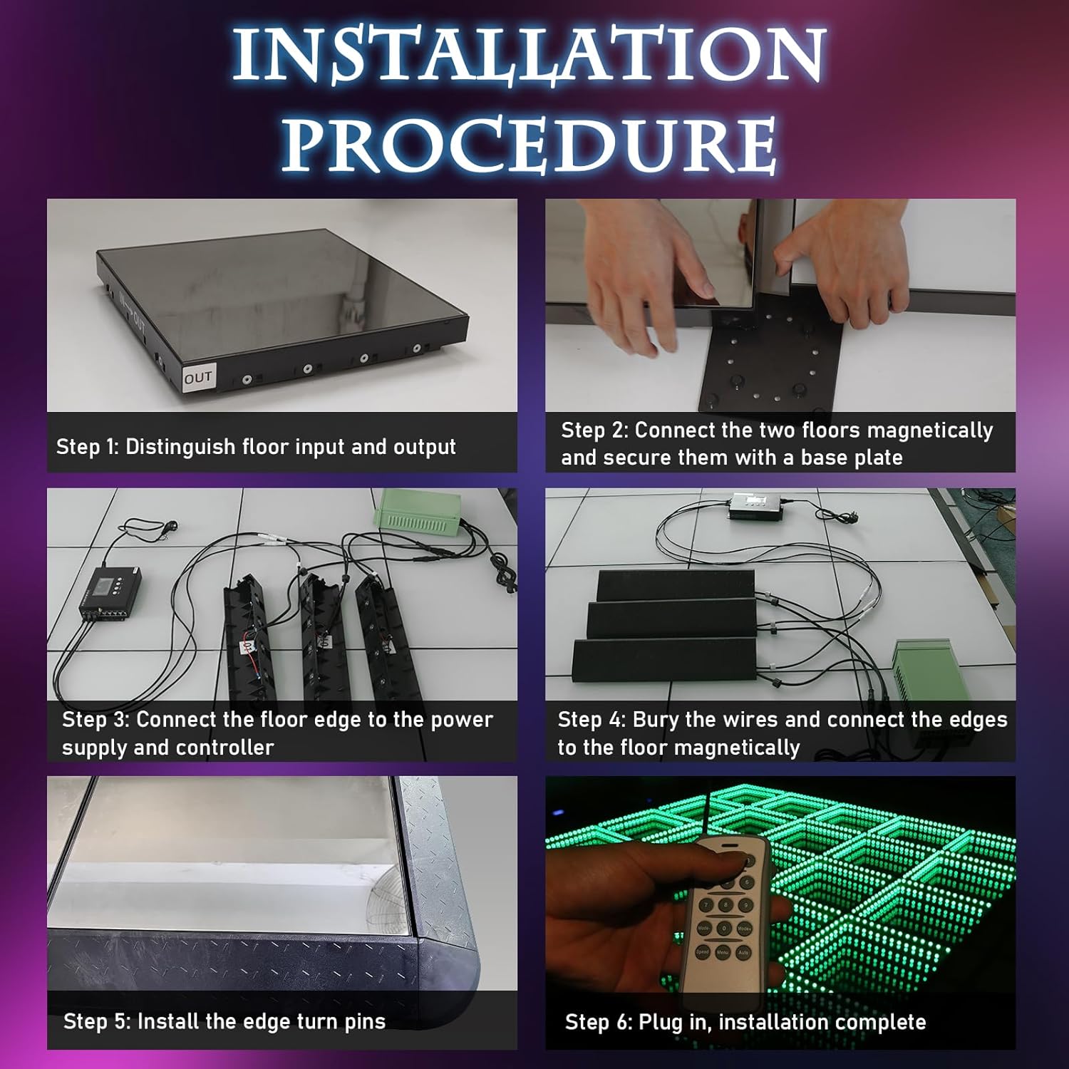 - ➤【Stunning 3D Infinity Mirror LED Dance Floor】Transform any event into a mesmerizing spectacle with our 3D infinity effect LED dance floor tiles. Perfect for weddings, nightclubs, DJ stages, and corporate events, these panels create a futuristic, immersive atmosphere with depth-defying visuals. The high-resolution LED matrix ensures vibrant lighting that captivates audiences.