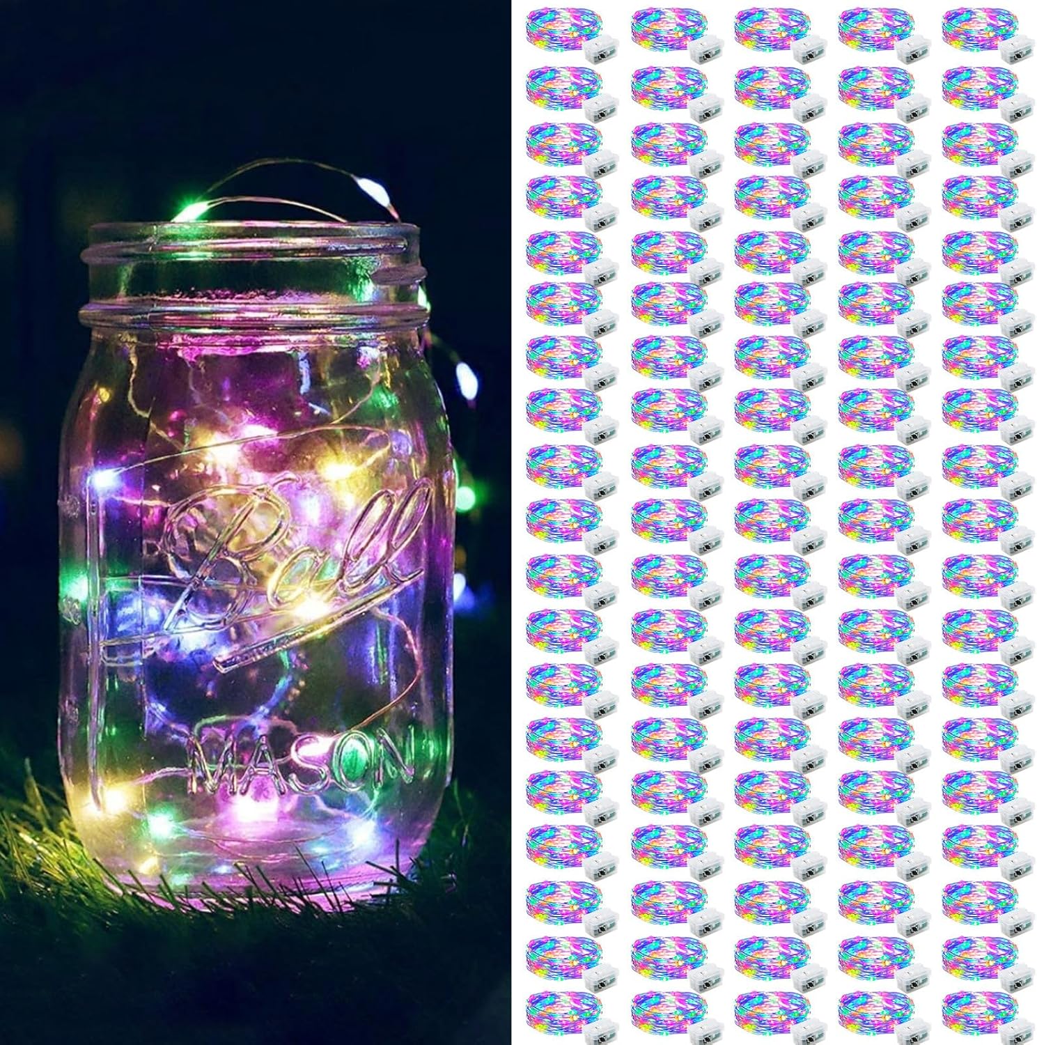 ZGWJ 100 Pack Fairy Lights Battery Operated, 7ft 20 Mini LED Fairy String Lights Silver Wire 3 Modes for DIY, Parties, Wedding, Bedroom, Halloween Christmas Decoration Multicolor