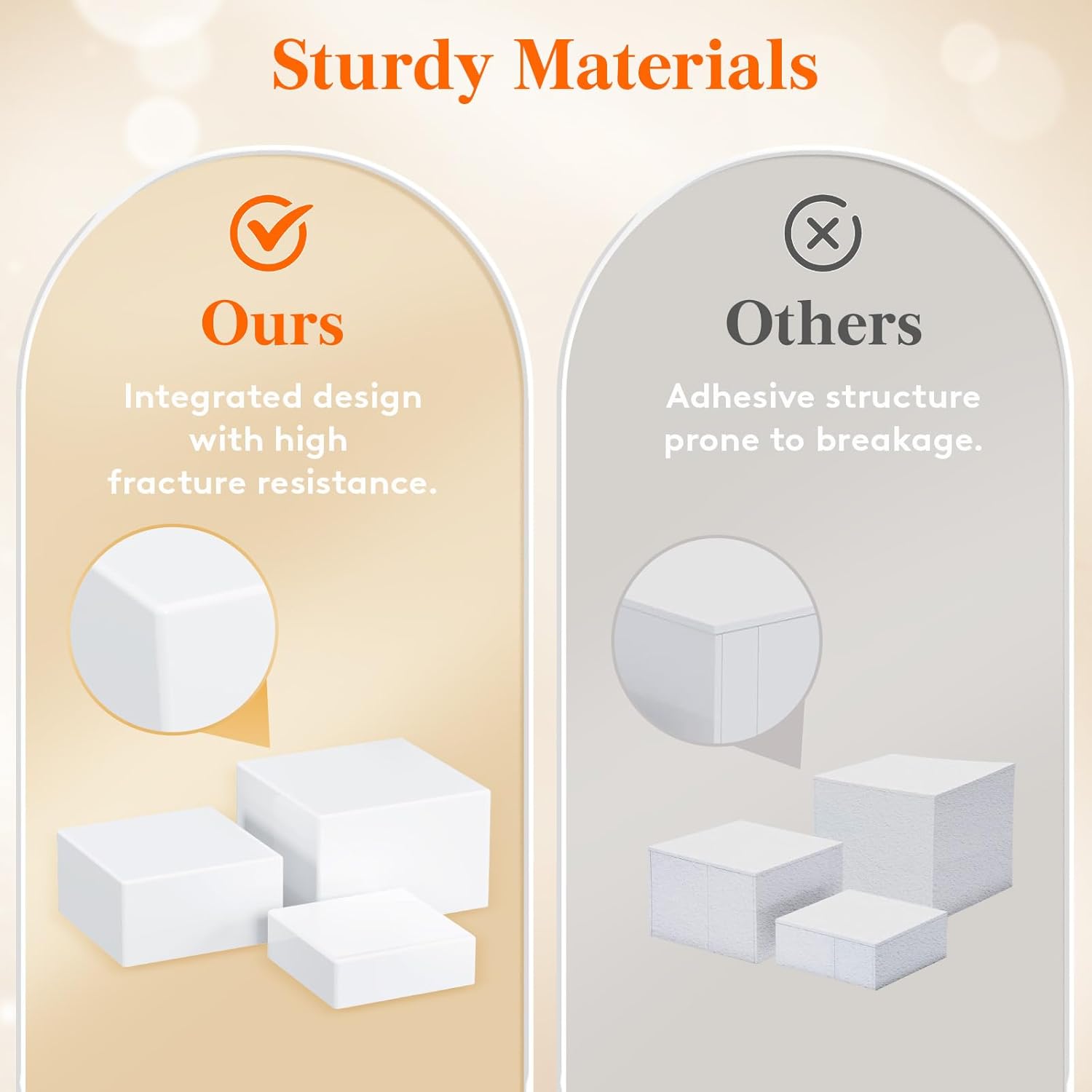 - Studry Material: Constructed with a robust plastic material, these food risers for buffet table are designed for repeated use. Integrated design with high fracture resistance. With a moderate height, they can support larger cakes without tipping over