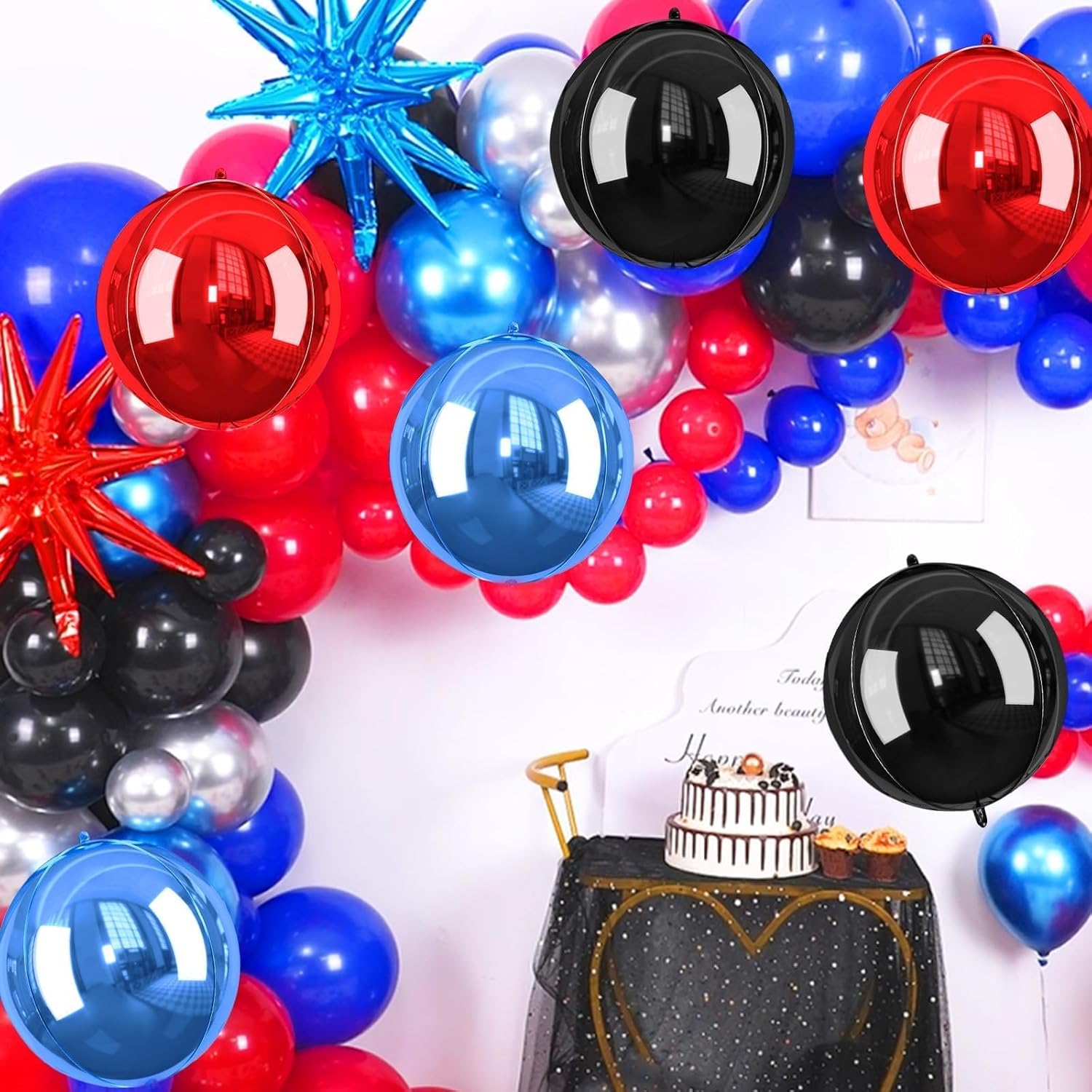 • 【PACKAGE CONTAIN】 This package includes 6 pcs 22-inch Blue Red Black round foil balloons, 1 pc straw and 1 pc ribbon. These large, eye-catching balloons are perfect for elevating your party decor with a bold and stylish touch.