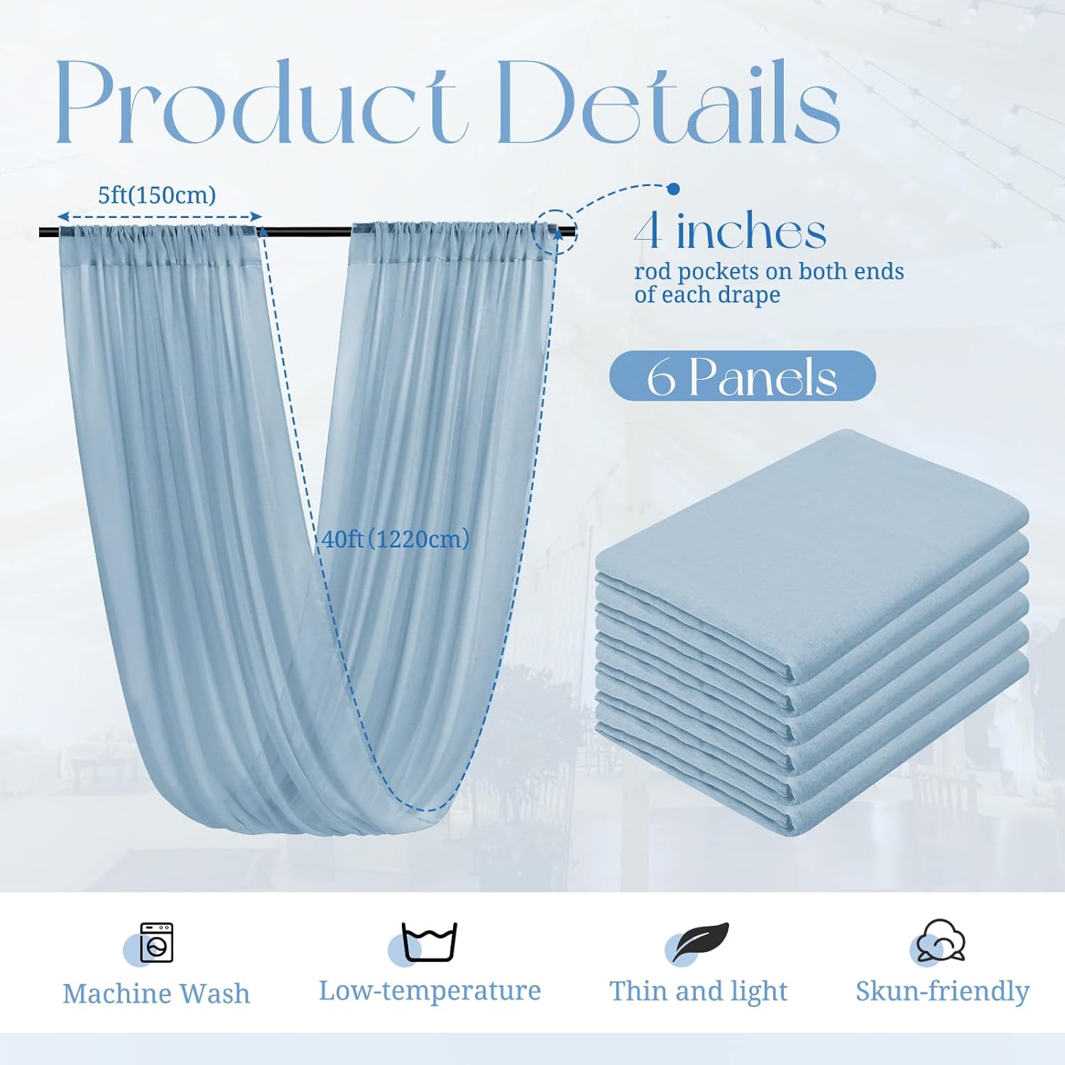 6 Panels Dusty Blue Ceiling Drapes for Wedding, 5ftx40ft Ceiling Drapes Cheesecloth Sheer Fabric Curtain Wedding Arch Draping Fabric Romantic Ceilings Decorations for Weddings Party Ceremony Stage