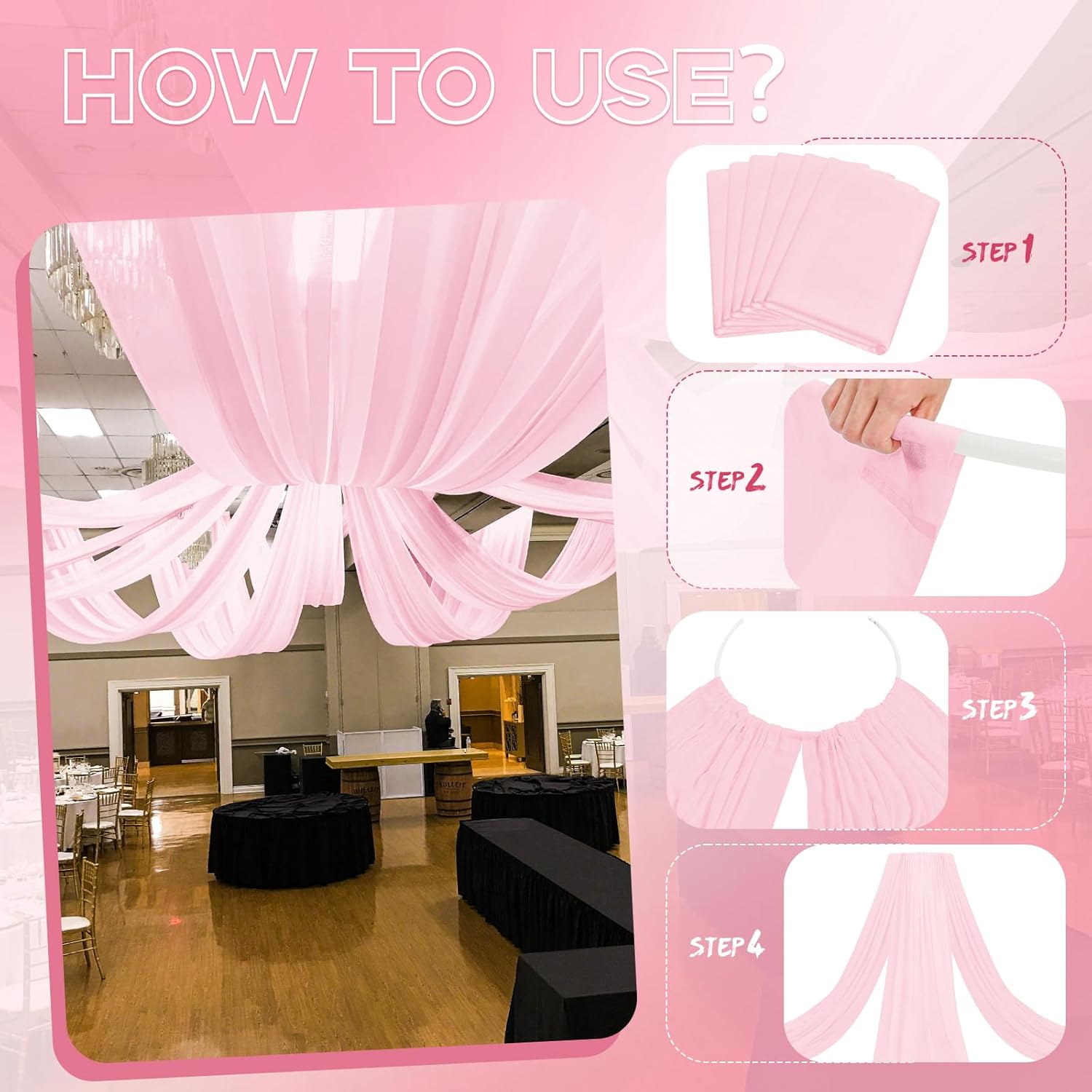 6 Panels Pink Ceiling Drapes for Wedding 5ftx10ft Ceiling Drapes Wedding Arch Draping Fabric Cheesecloth Sheer Curtain Romantic Ceiling Decorations for Weddings Party Banquet Ceremony Stage