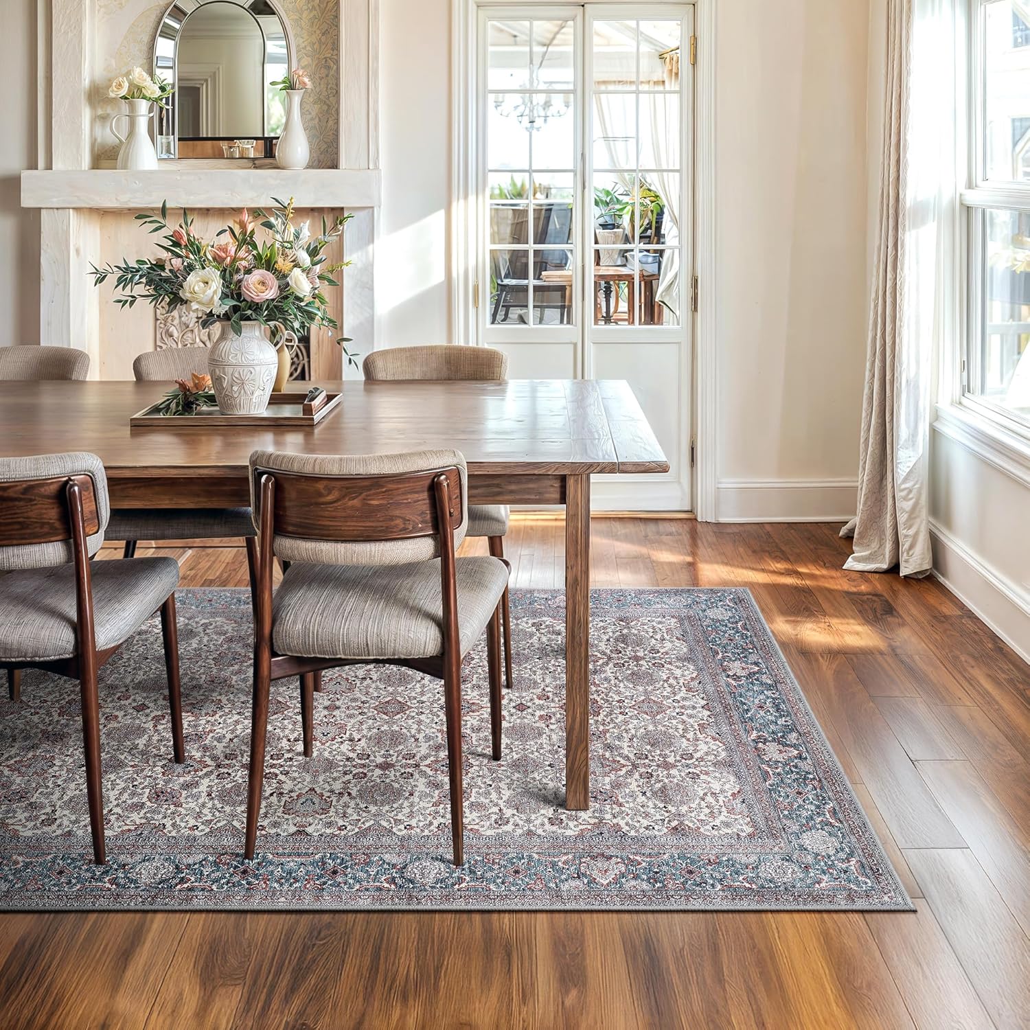 Bloom Rugs Washable Non-Slip 6' x 9' Rug - Teal/Blue/Beige Traditional Oriental Area Rug for Living Room, Bedroom, Dining Room, and Kitchen - Exact Size: 6' x 9'