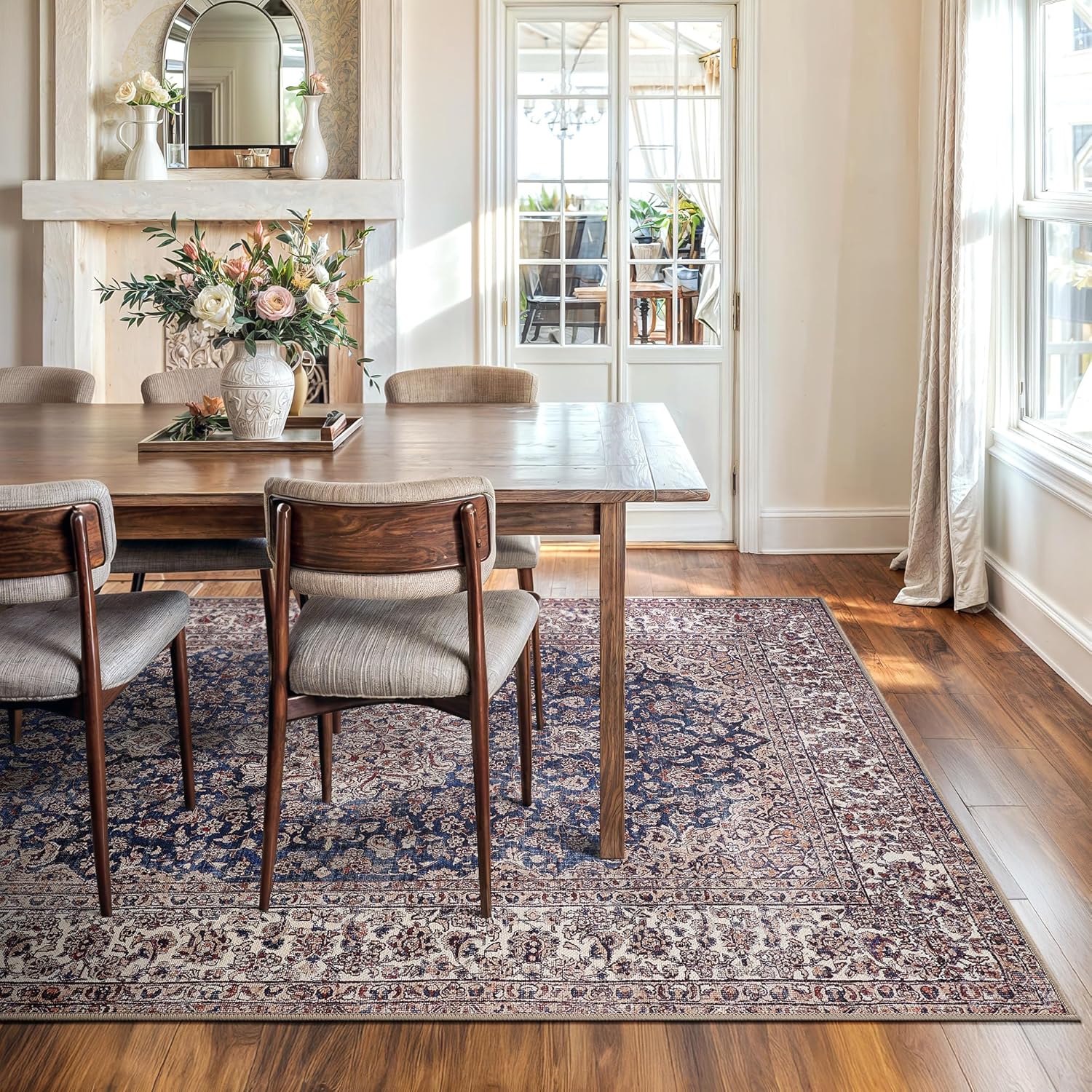 Bloom Rugs Washable Non-Slip 8' x 10' Rug - Dark Blue/Beige Traditional Medallion Area Rug for Living Room, Bedroom, Dining Room, and Kitchen - Exact Size: 8' x 10'