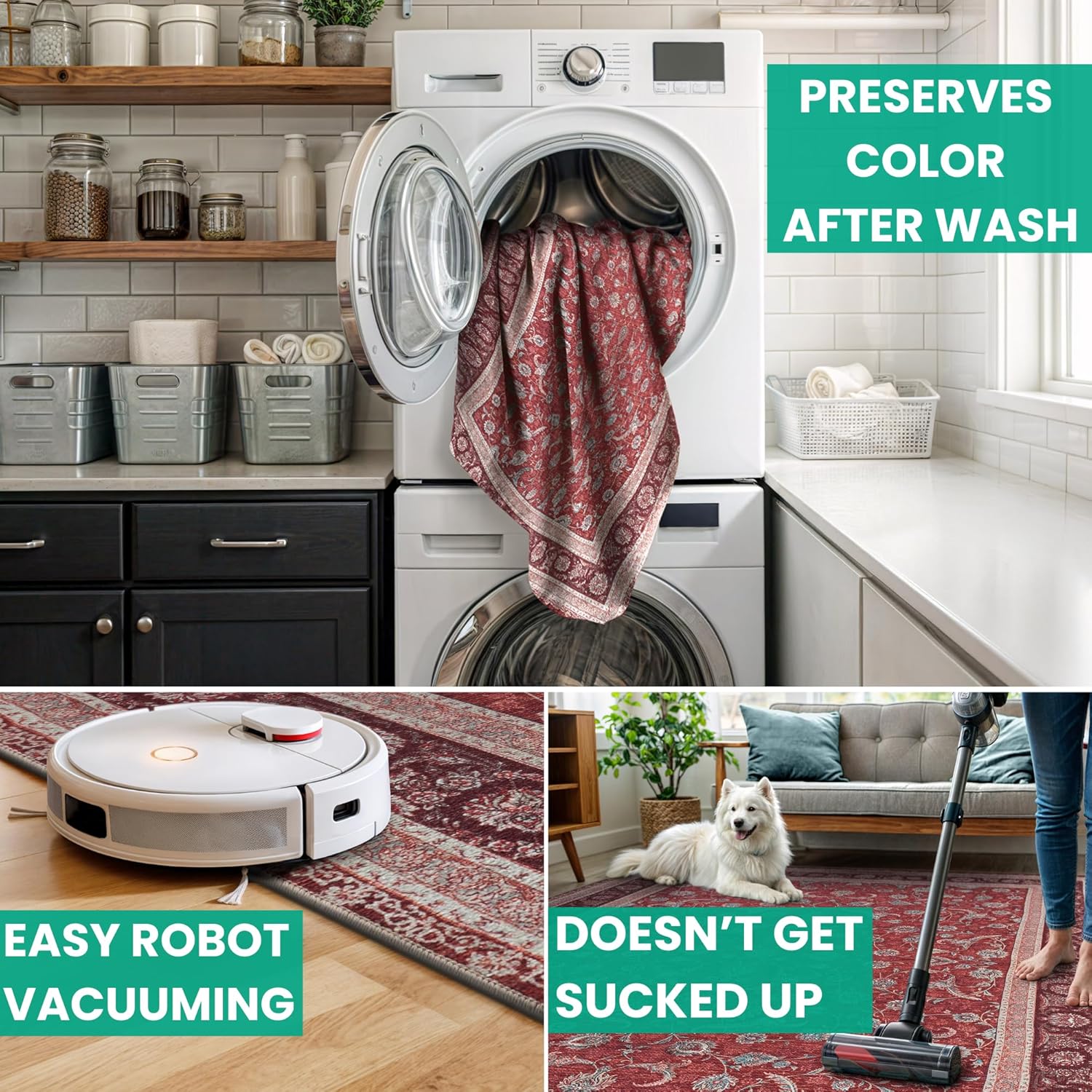 - MACHINE WASHABLE: Machine wash on delicate cycle (do not use bleach) at 85°F (30°C) and line dry or dry on air-only cycle without heat. Vacuum regularly and spot clean small stains. This easy to clean rug is perfect for families with kids and pets, and for high traffic areas.