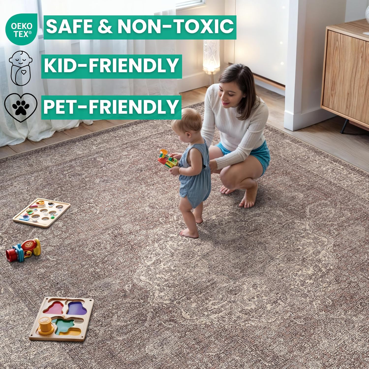 - EASY TO SETUP AND NON-SLIP: This one-piece machine washable rug with non-slip backing attached eliminates any additional setup. Simply unfold and lay flat upon arrival in the desired space. Non-slip backing prevents the rug from moving or sliding without the need for additional rug pad or grippers.