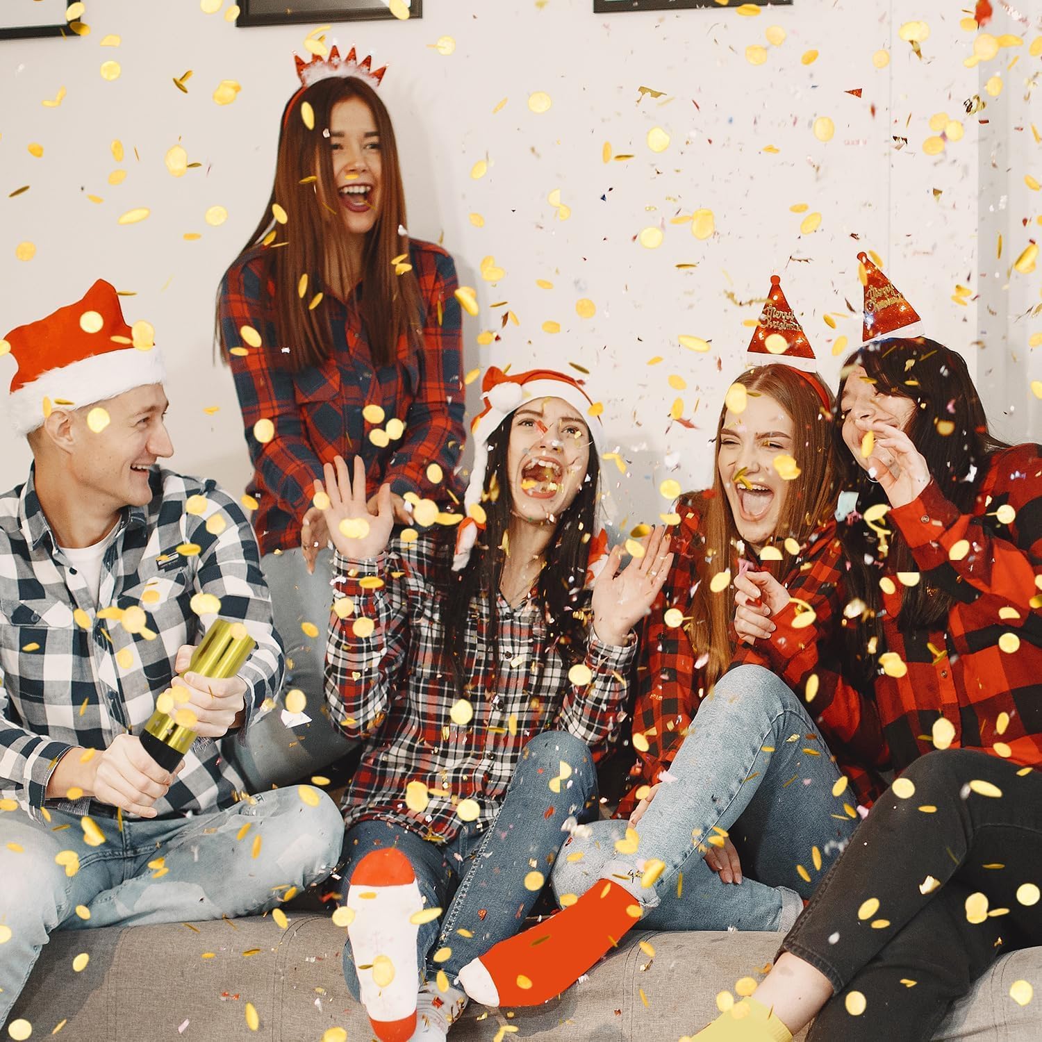 - 【Safe & Easy to Use】Our mini golden confetti cannon kit contains gold foil confetti are non-toxic. Small party poppers confetti shooters work well indoors and outdoors easy to clean and 100% safety, you and your guests can enjoy confetti cannon for your celebrations party.Just give each confetti cannon a hard twist and let the magic happen!