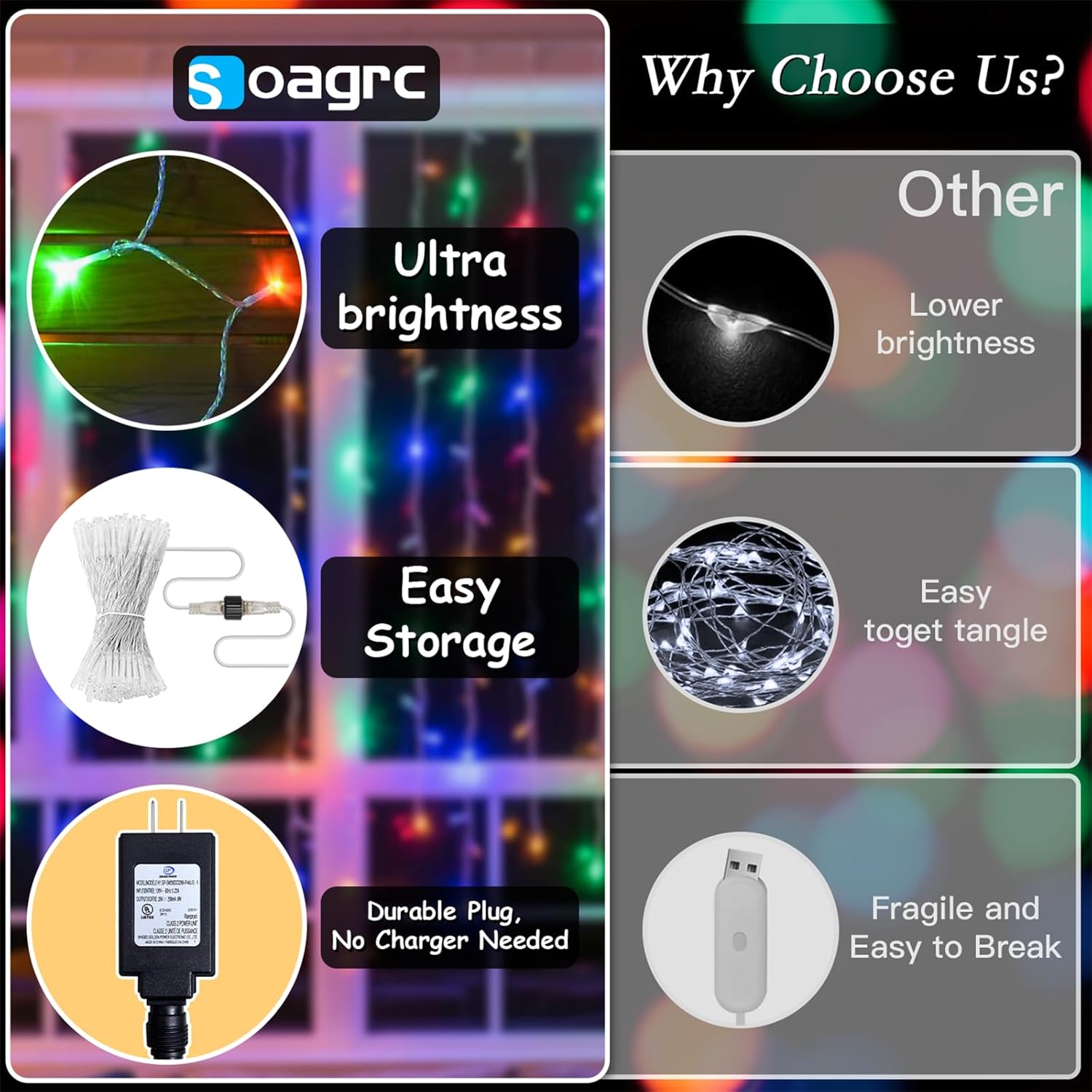 - Upgraded Durability for Everyday Use - Soagrc curtain string lights are crafted with enhanced copper wire and high-quality LEDs to ensure stronger durability. Tangle free and stable, theyβre ideal for everyday use from dressing up your bedroom wall to adding a soft glow behind your reading nook or vanity mirror
