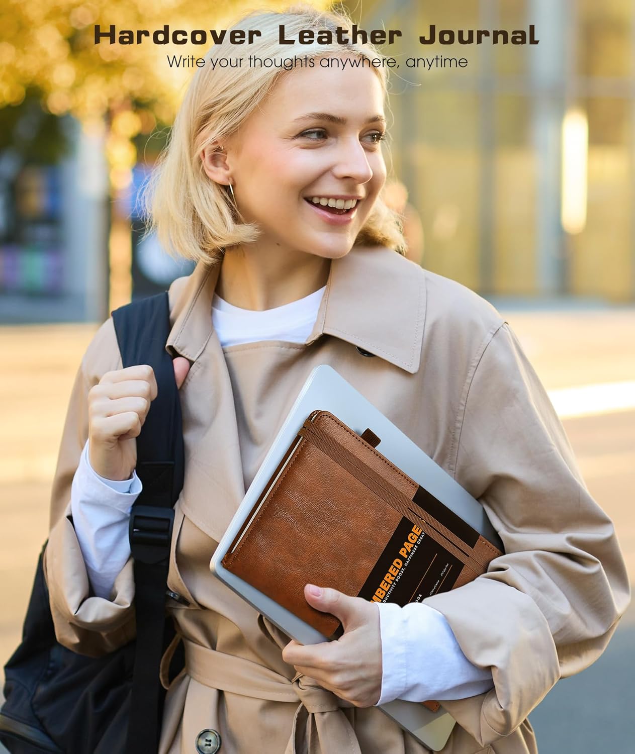 - 【Wide Usage & Ideal Gifts】The leather bound journal is ideal for men women, perfect for business, school, office, home, work, college, students, adults, travelers, scientists, and people in many other fields. Suitable for writing, study, daily journals, drawing, travel, diary notebooks or for taking notes in college classes. Whether it's a birthday, anniversary, or graduation, Mothers Day,Fathers Day,Valentine's Day, Christmas, Halloween, New Year, this notebook will make an excellent gift.