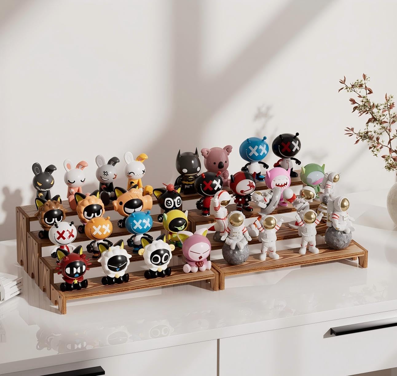 - 【All-Scenario Wooden Tiered Display Riser】Turn every nook into a styled gallery! Curate vanity perfumes, spotlight collectible figures in living rooms, stage succulent gardens in bedrooms, or organize spices/coffee gear in kitchens. Shift instantly from Tiered Spice Rack Organizer to party wooden cupcake stand, craft show display stands, or display shelf for vendors. Nestable 4-tier design adapts apartments to expo halls – becomes portable vendor booth display items for weddings/markets