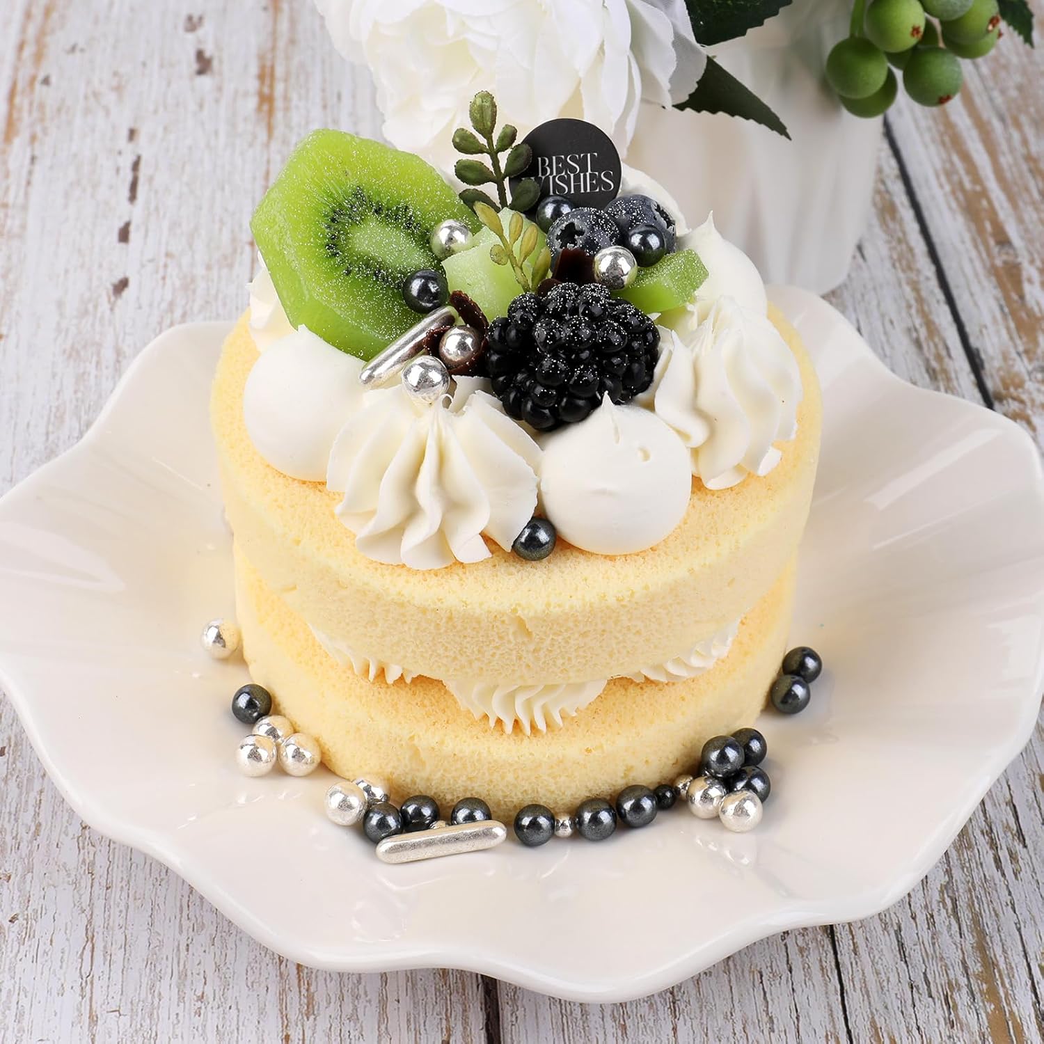 - Elegant Metallic Colors: Includes black, white, silver, and gold sugar pearls, plus two unique blends—gold & white hearts, and silver & black pearls—for a striking, high-end look on any dessert