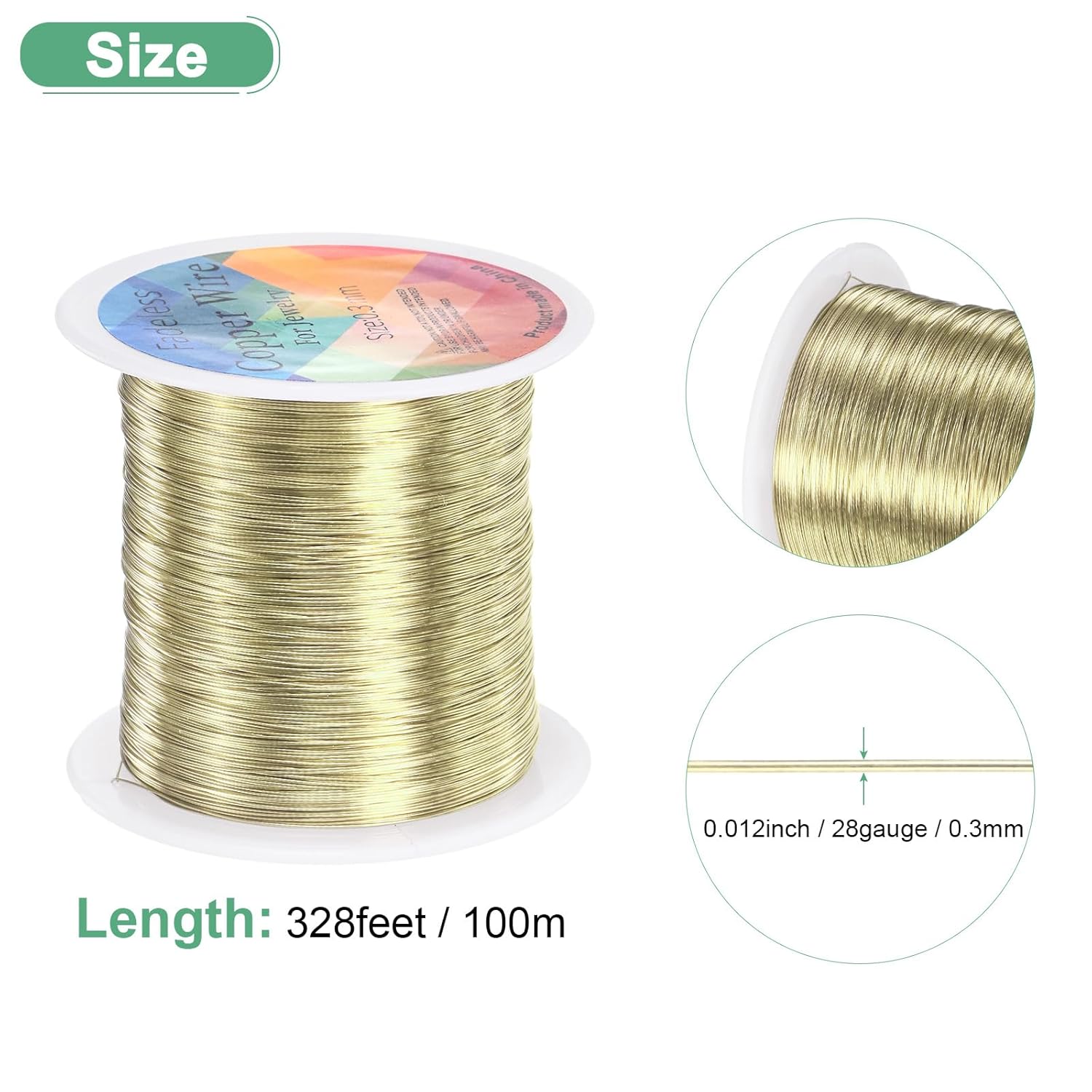 0.3mm Jewelry Wire, 28 Gauge 328FT Craft Wire Copper Beading Wire for Jewelry Making/Planting/Weaving/DIY Crafting, Soft Metal Wires [100M, Light Golden]