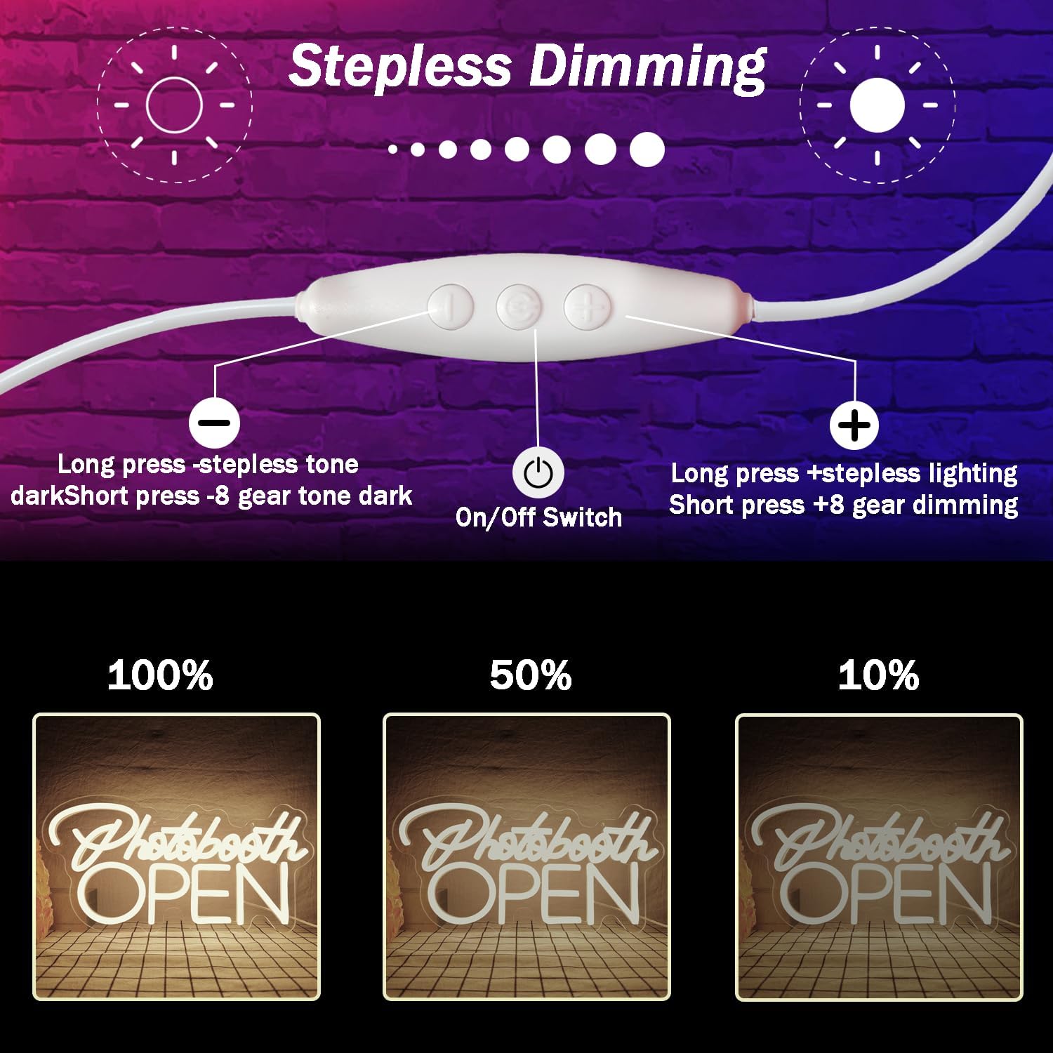 PhotoBooth Neon Sign for Wall Decor Dimmable Photobooth Neon light with USB Open Neon Light Office Open Sign Neon Decor Wedding Reception Sign
