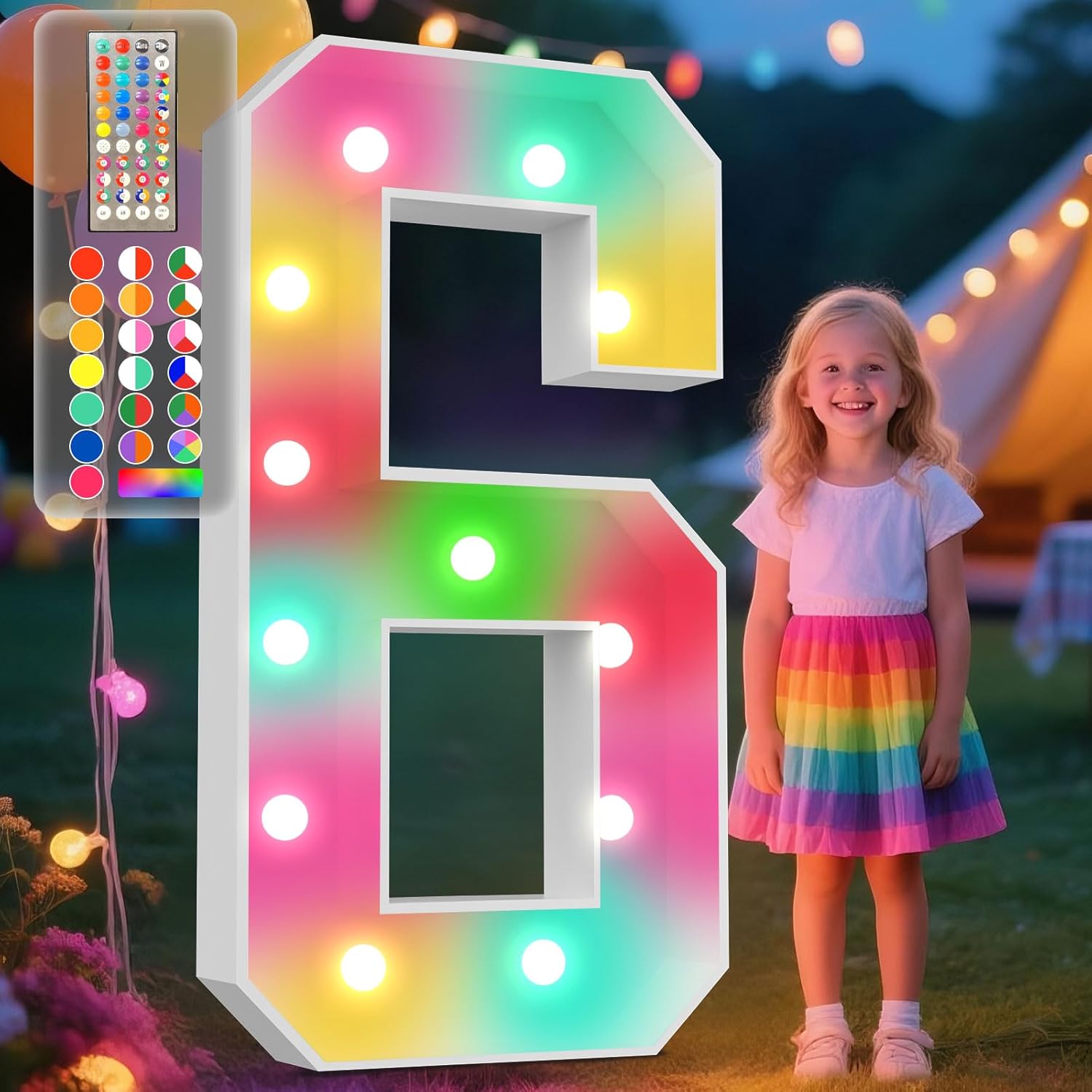 Ledido 4FT Marquee Light Up Numbers, 34 Colors Changing Marquee Numbers 4 Feet Tall with Remote, Big Numbers for Party Wedding Graduation Birthday Decoratoons, Large Light Up Number 6