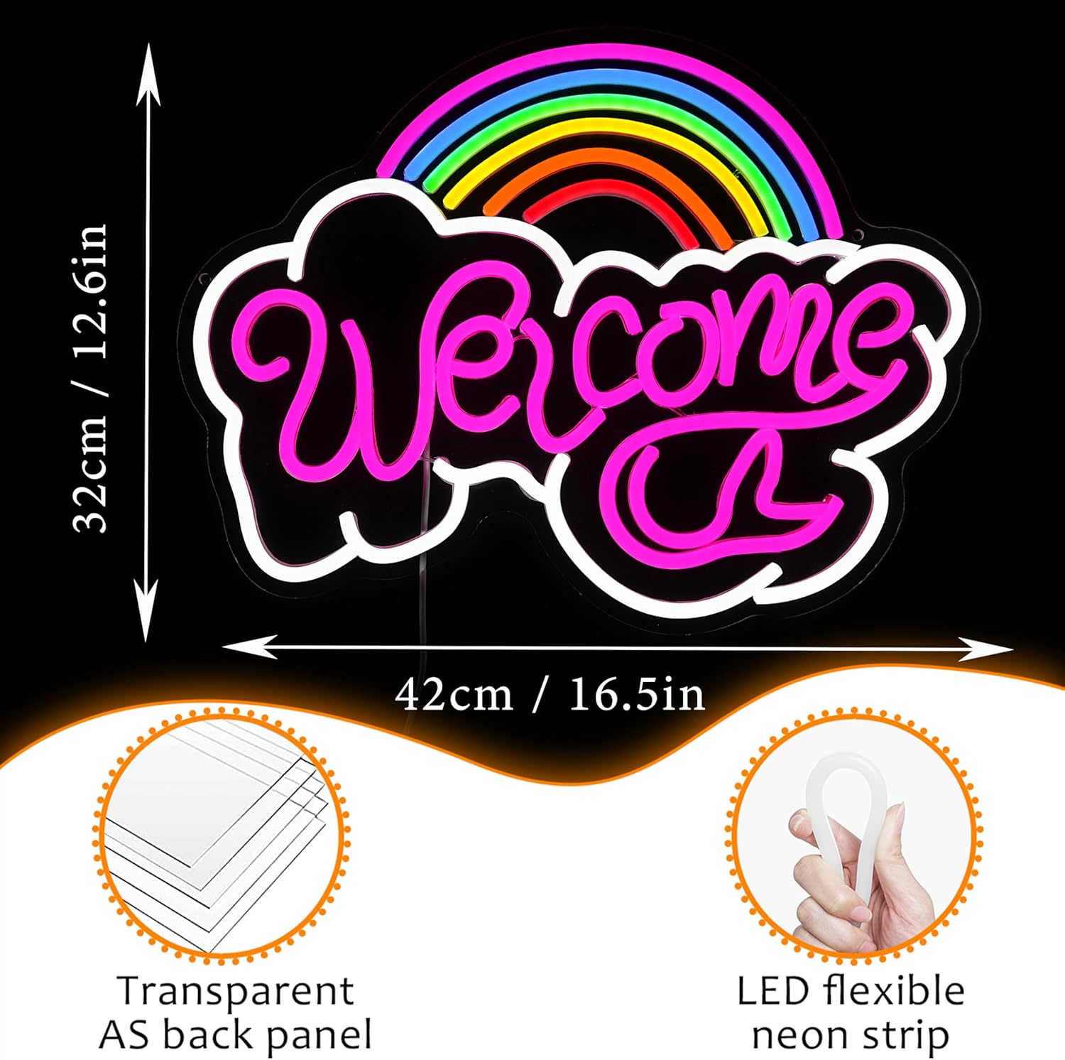 LISIGNVE Rainbow Welcome Neon Sign Cloud Light Up Sign Welcome Led Sign Rainbow Neon Light with USB for Bedroom Wedding Party School Business Wall Decor (16.5”*12.6”)